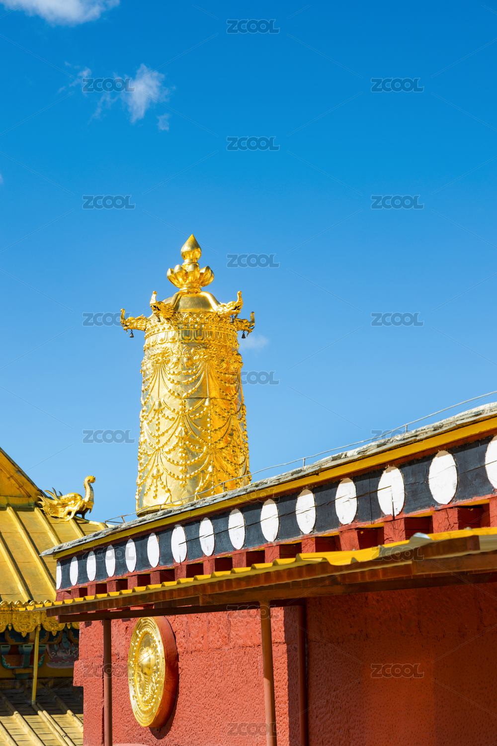 中国西藏拉萨大昭寺金碧辉煌的金塔