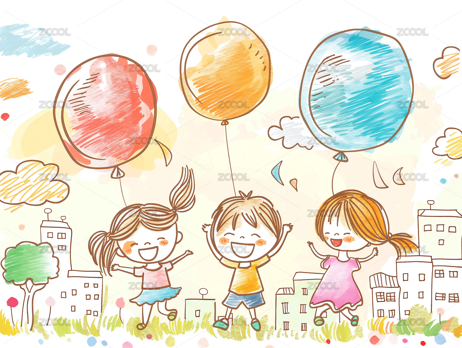 插画,成长,儿童,儿童节,孩子,户外,欢乐,节日,可爱,快乐