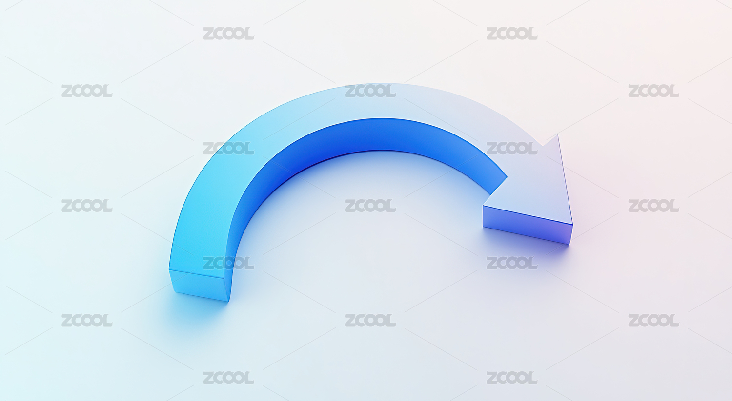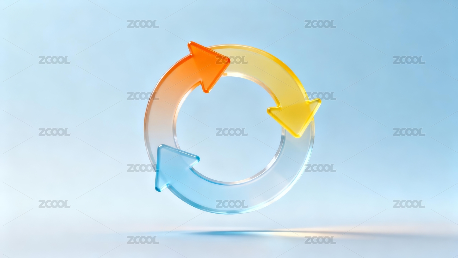 黄色和蓝色渐变透明玻璃质感的循环箭头