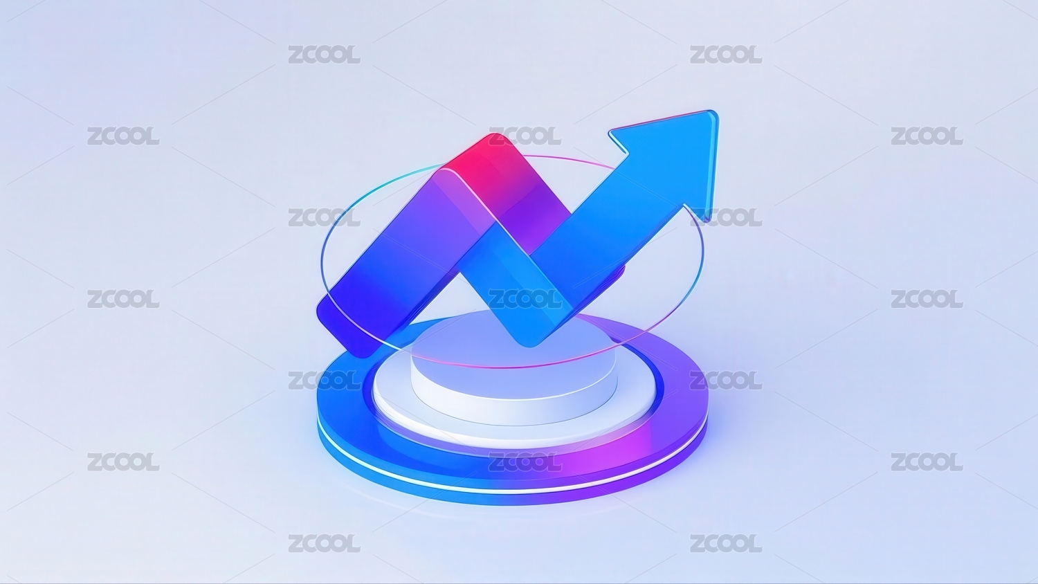 3D红蓝色拼接互补圆环与向上箭头金融素材