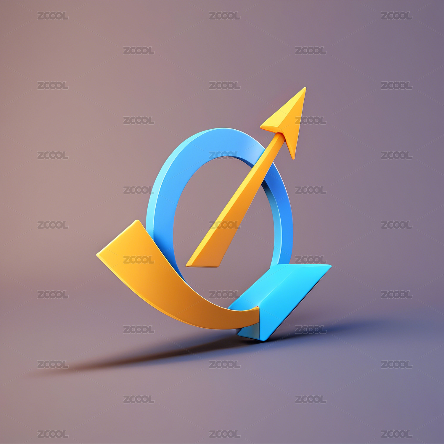 3D黄蓝色循环拼接圆环与向上箭头金融素材