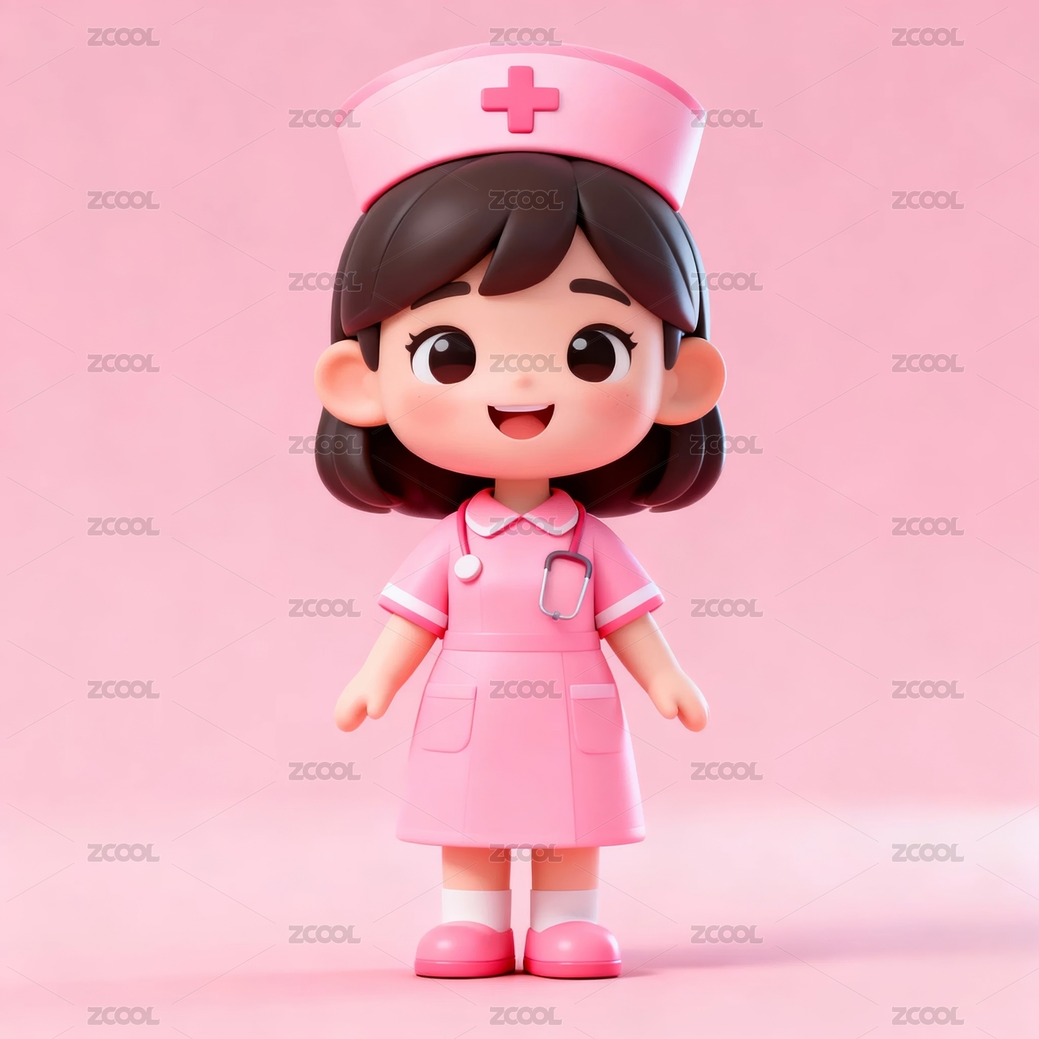 戴白帽穿医服挂听诊器Q版萌系护士3D插画
