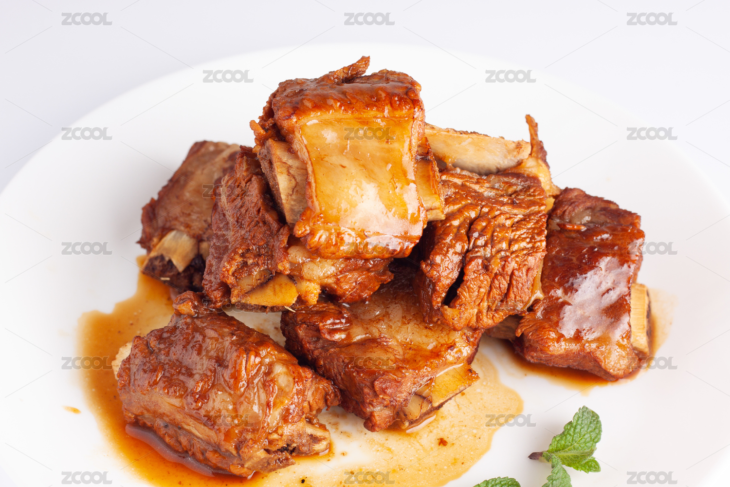 白背景的糖醋排骨美食