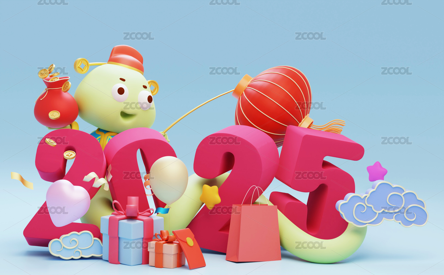 3D国潮风卡通生肖蛇庆祝2025春节喜庆