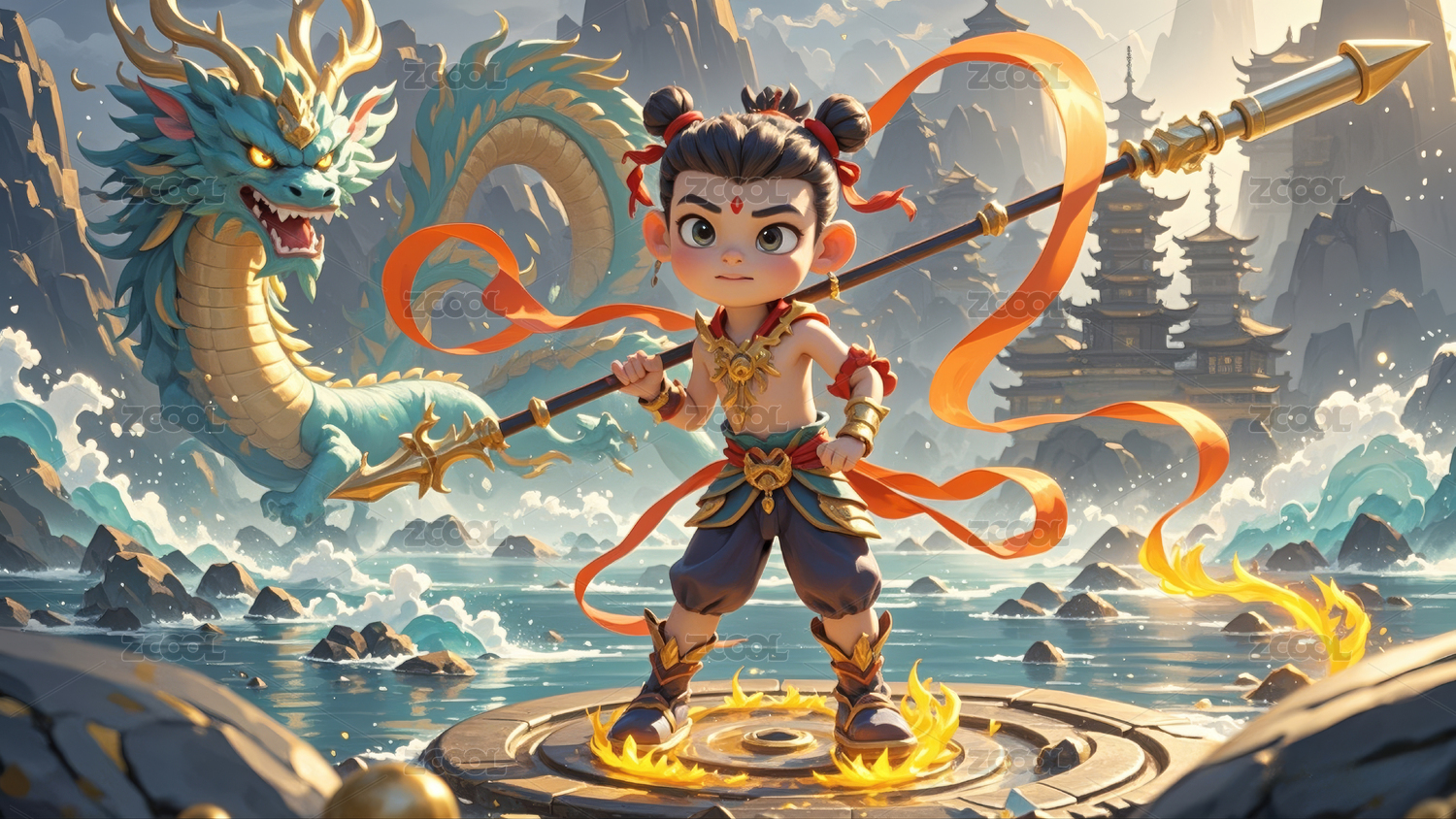 3D,插画,三维立体,古风,少年,武器,盔甲,中国风,数字艺术,AI