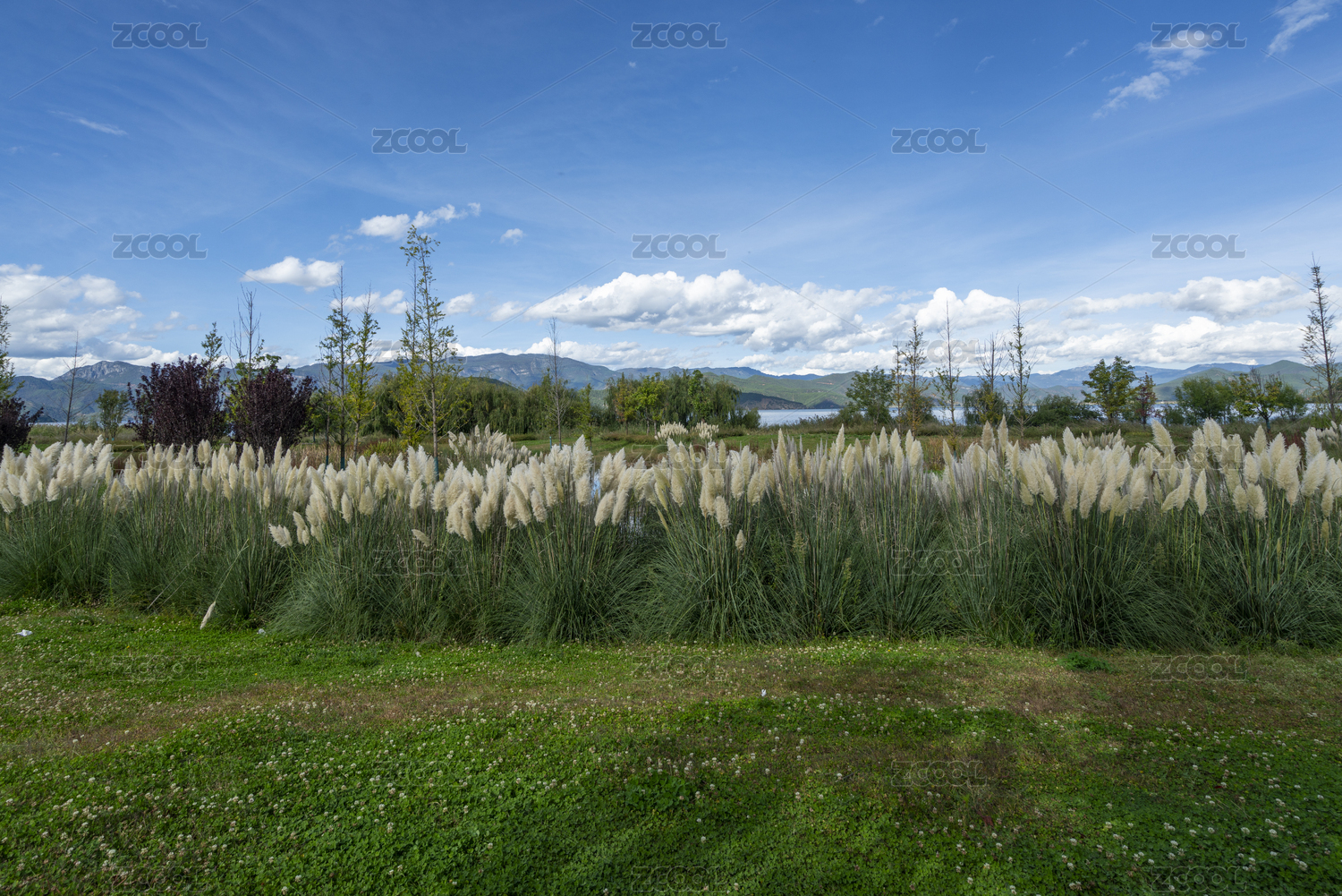 中国,云南,大理,洱海,湖畔,湿地,白天,蓝天,白云,草丛