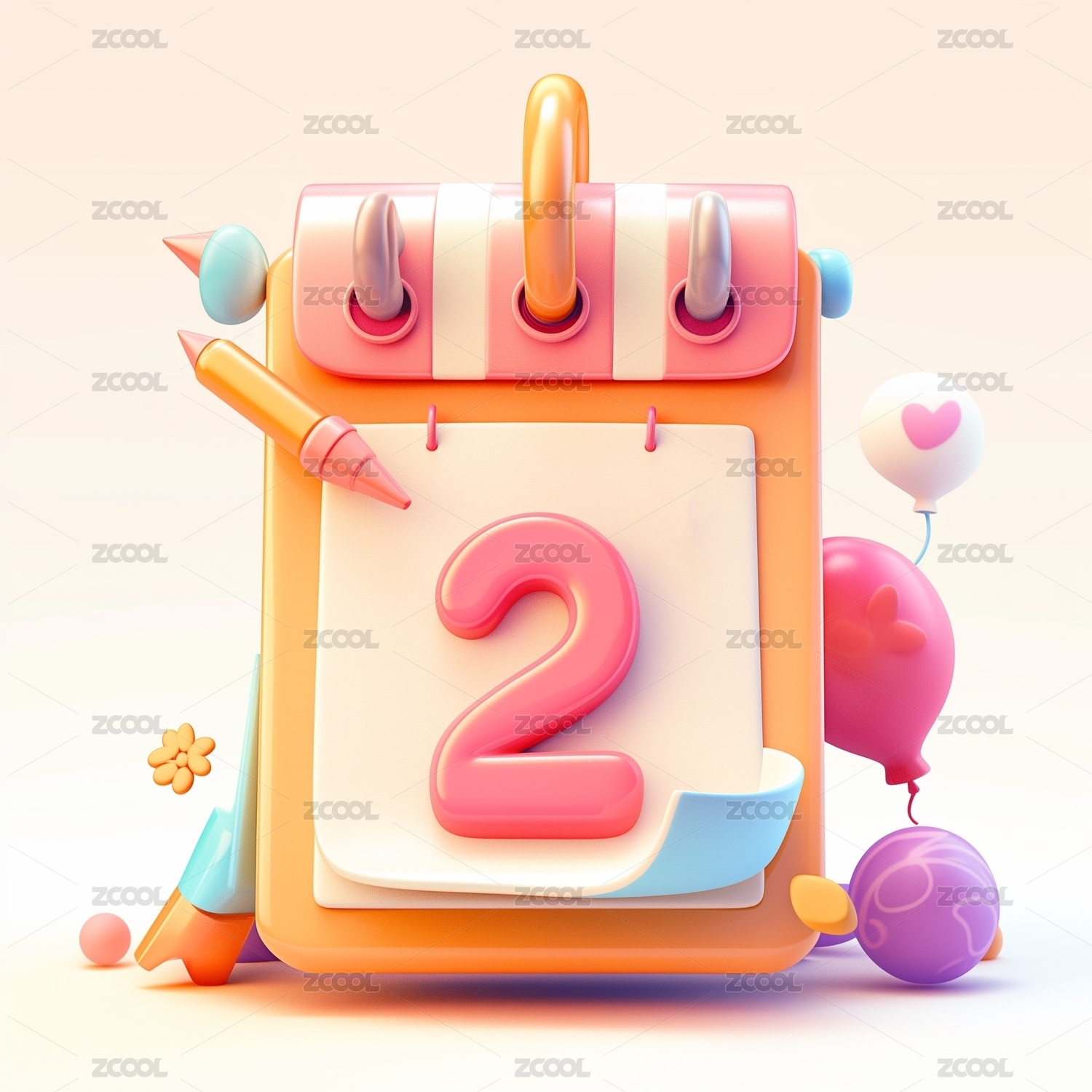 日历, 云朵, 3D, 卡通, 插画, 简约, 数字1, 奶油色, 粉色, 桌面