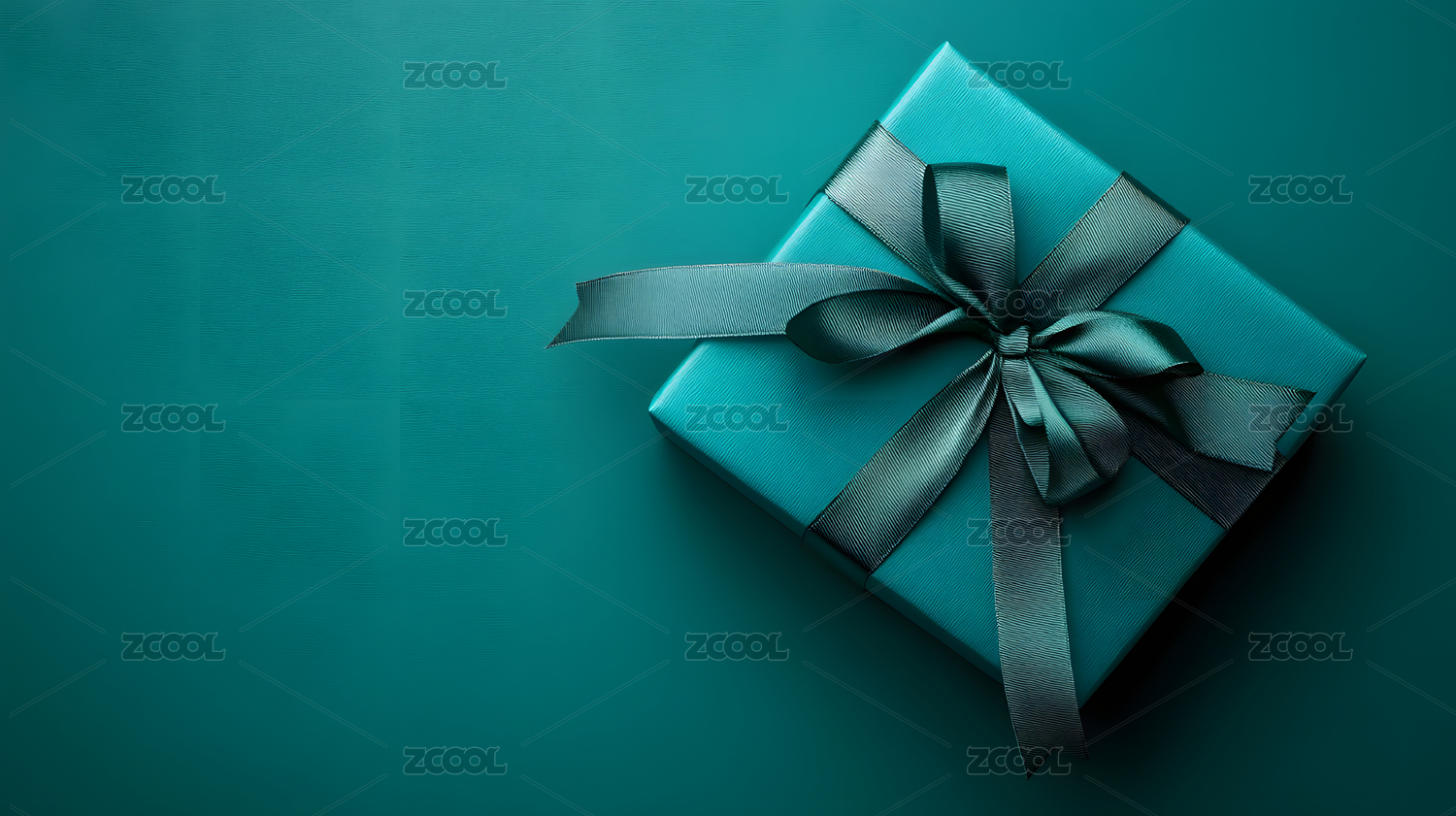 深蓝色礼品盒俯视图情人节惊喜礼盒概念插图