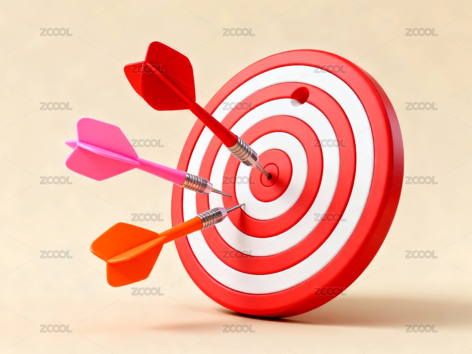 红白靶心与飞镖命中目标