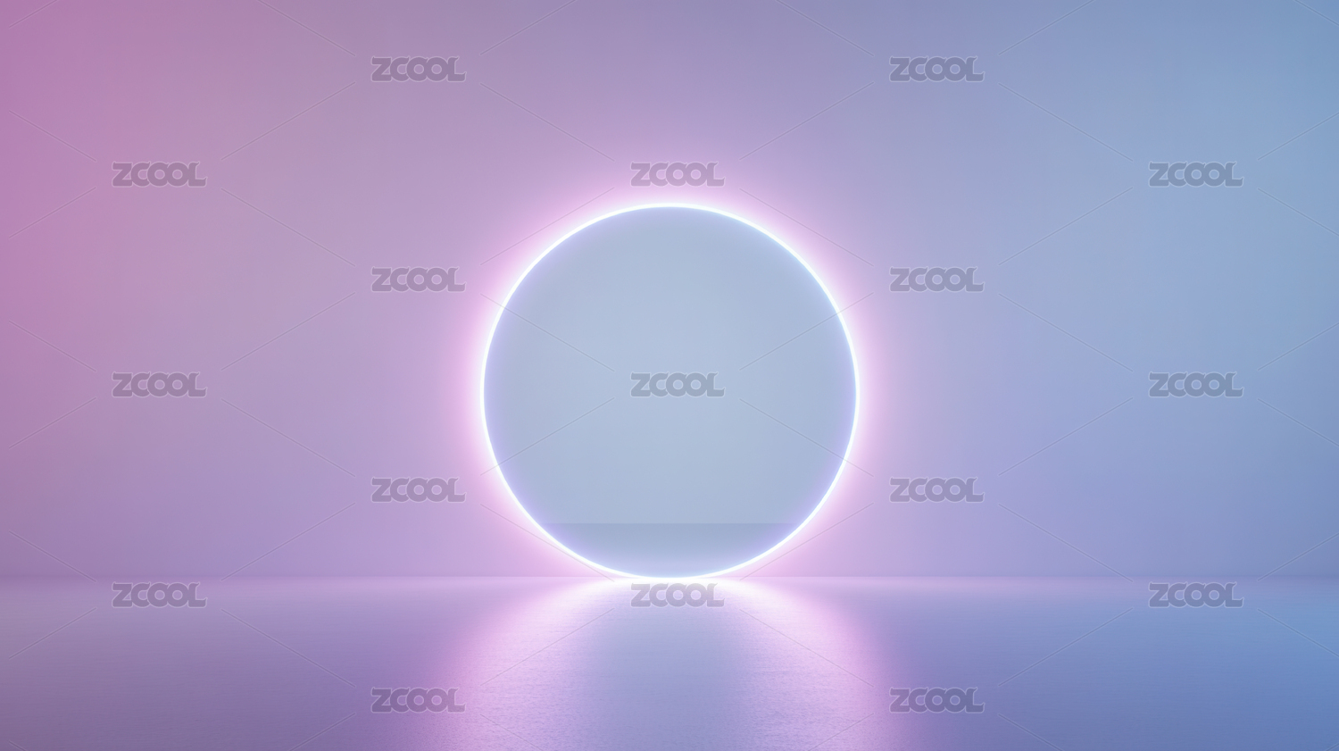 霓虹灯圆环在柔和背景中的未来感场景