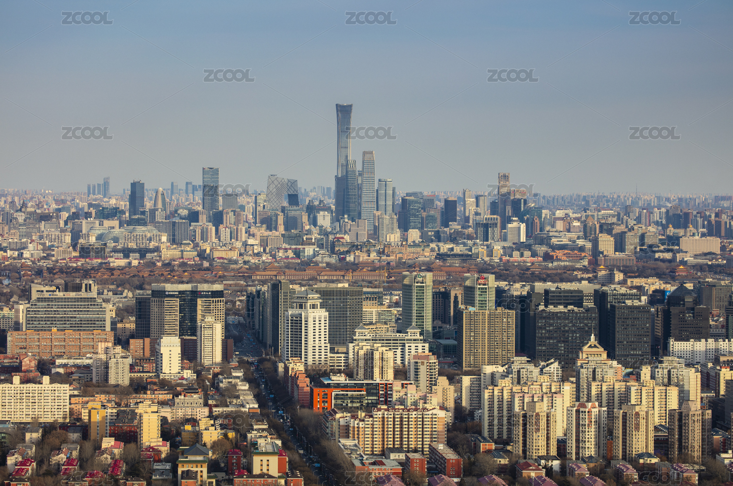 中国北京奥林匹克塔俯瞰国贸城市建筑风光