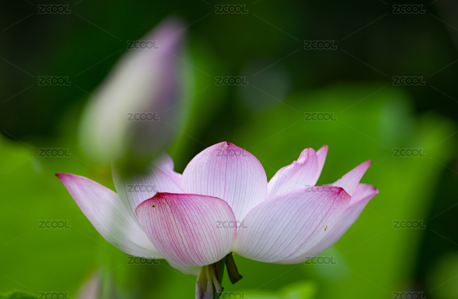 夏天,一朵清新淡雅的美丽荷花绽放在绿色的荷塘中