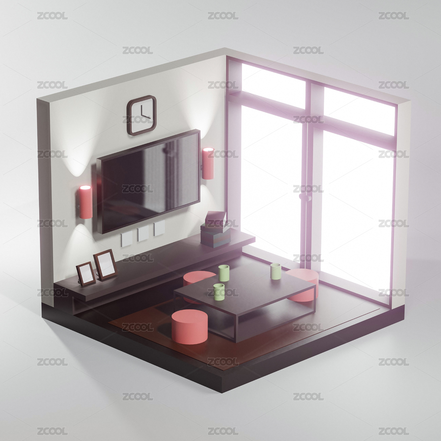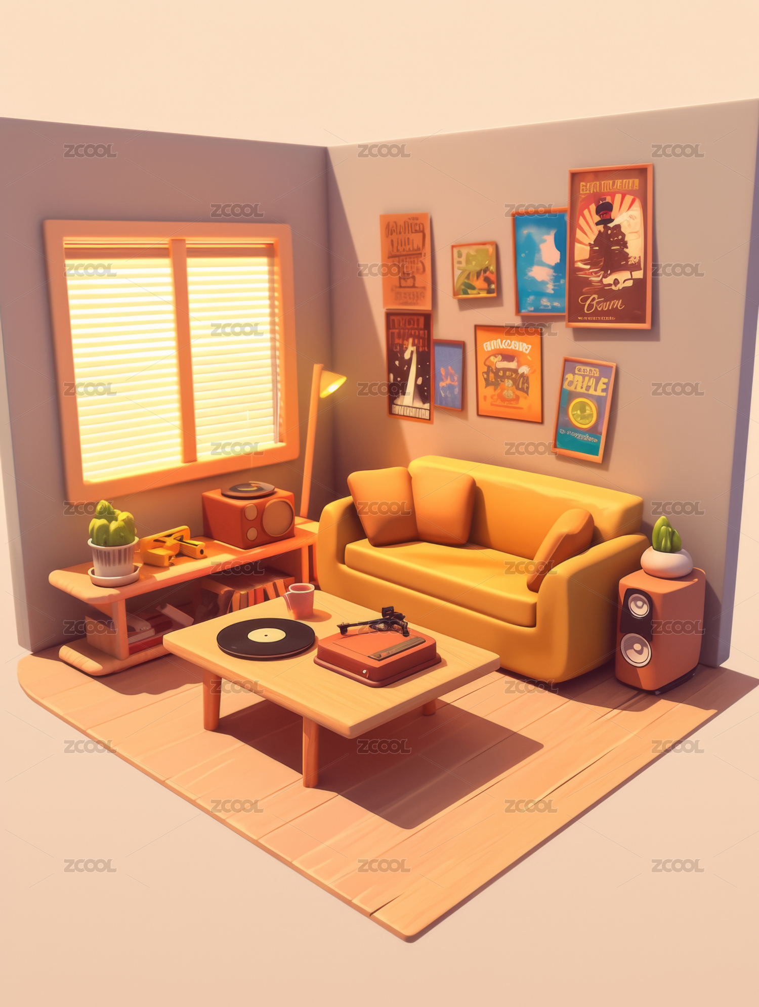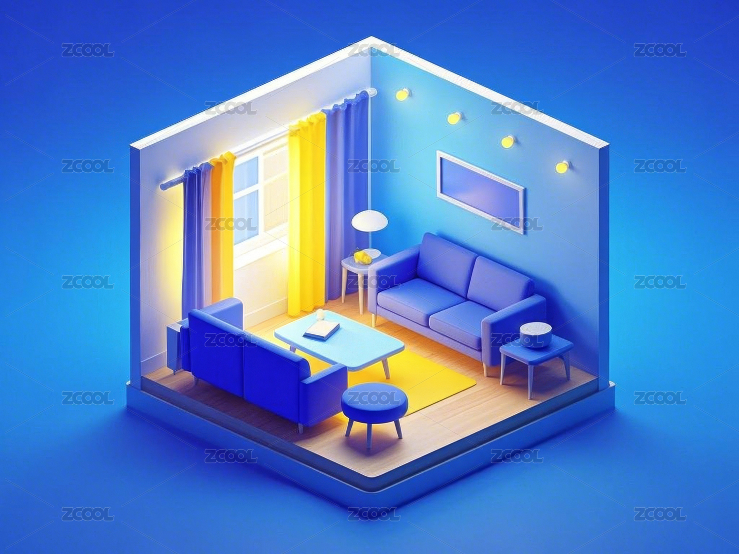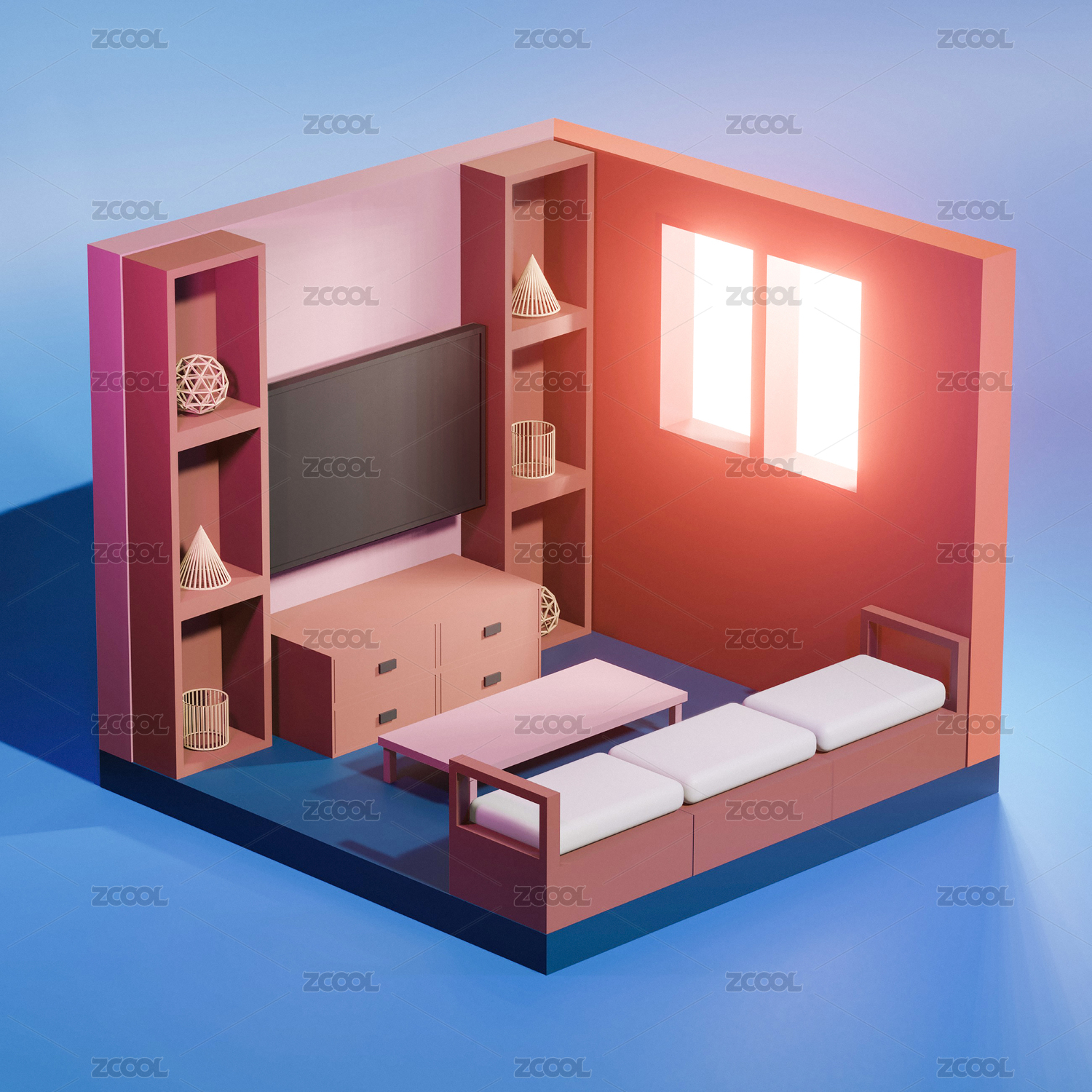 3D,渲染,房间,客厅,创意,设计,背景,模型,卡通,室内