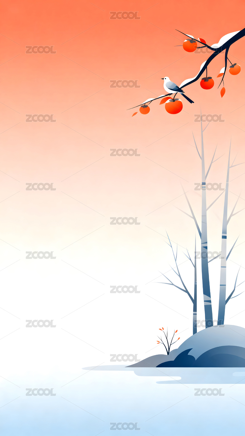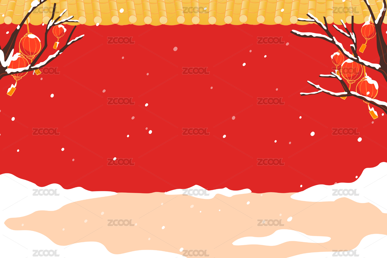 卡通冬季大雪梅花树枝城墙背景矢量插画