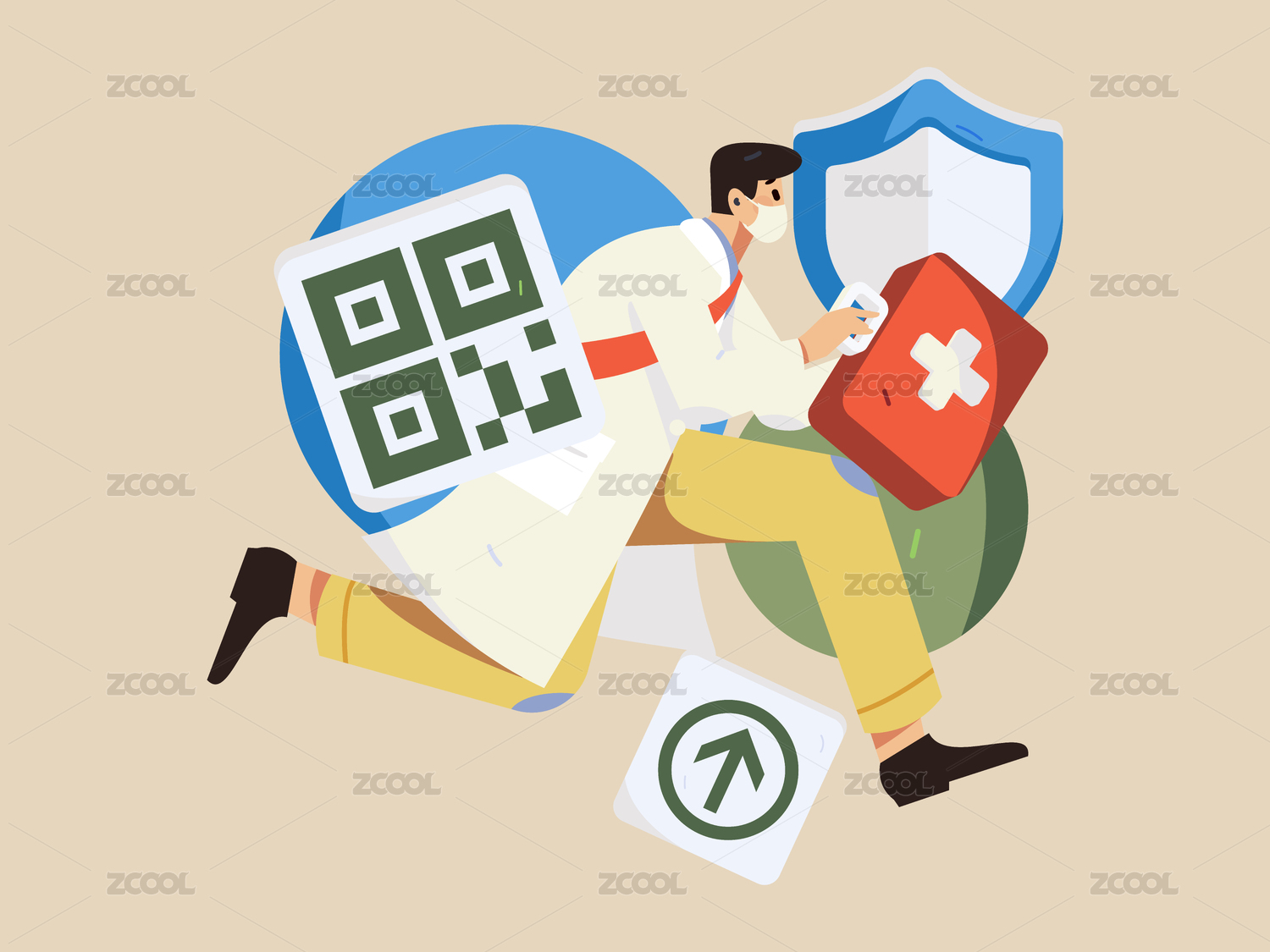 绿码医生防疫抗疫扁平矢量概念运营插画