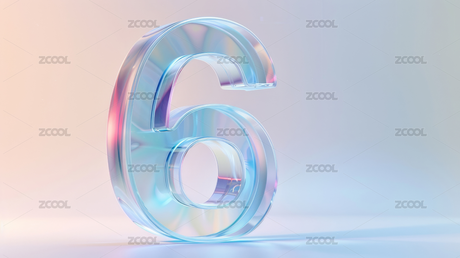 透明水晶玻璃质感数字6