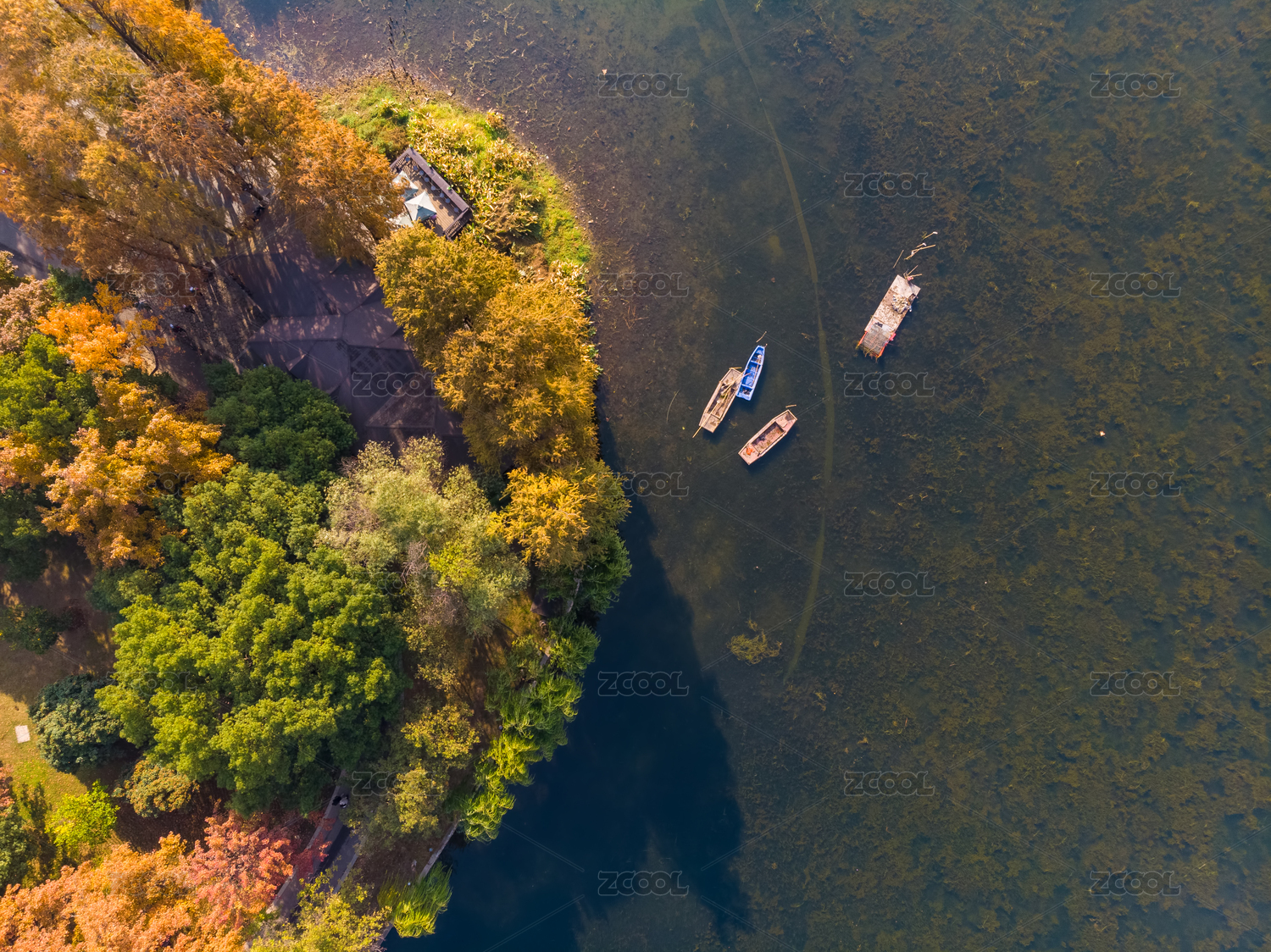 湖北武汉东湖听涛风景区深秋航拍风光