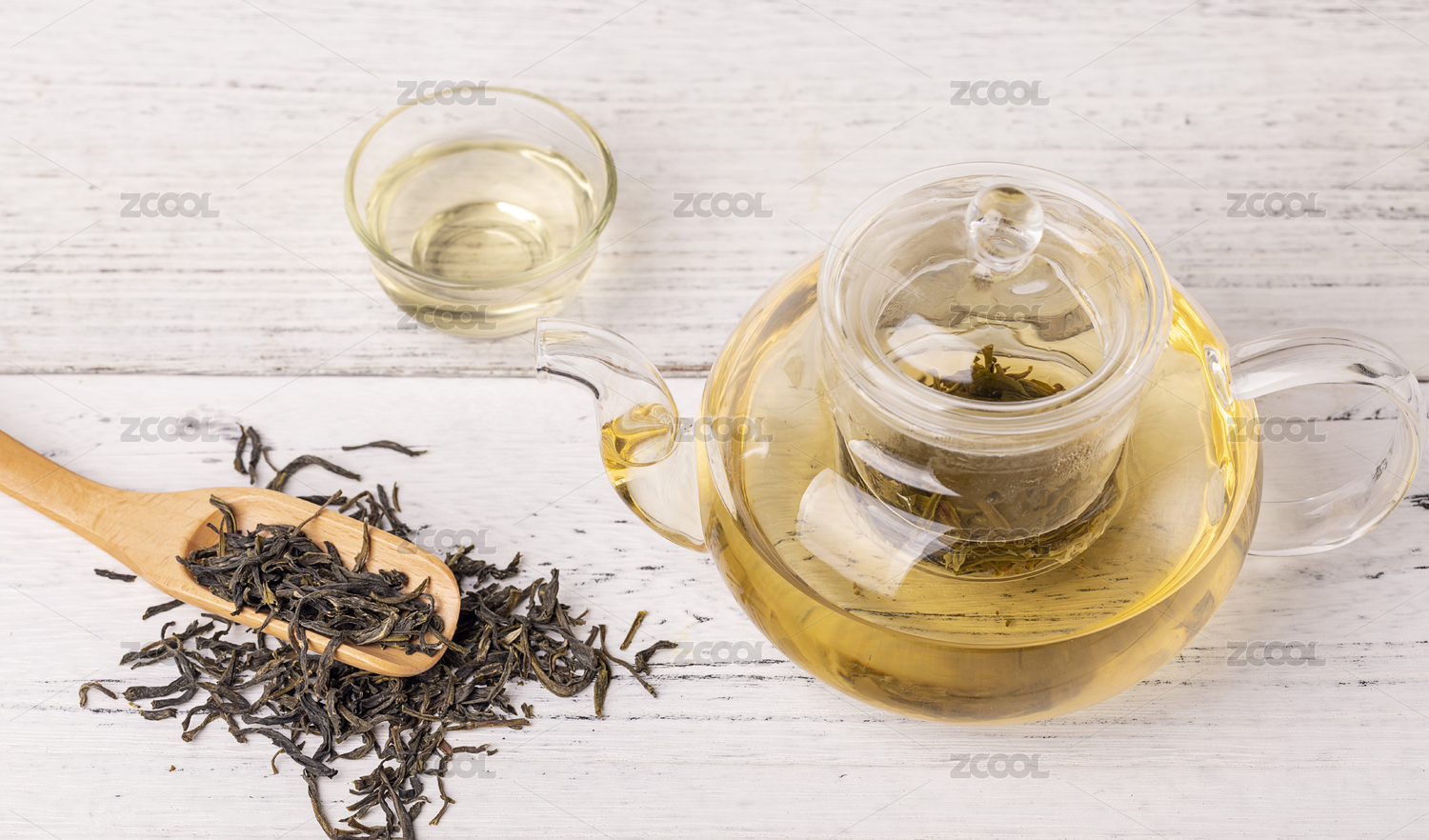 桌子上的绿茶