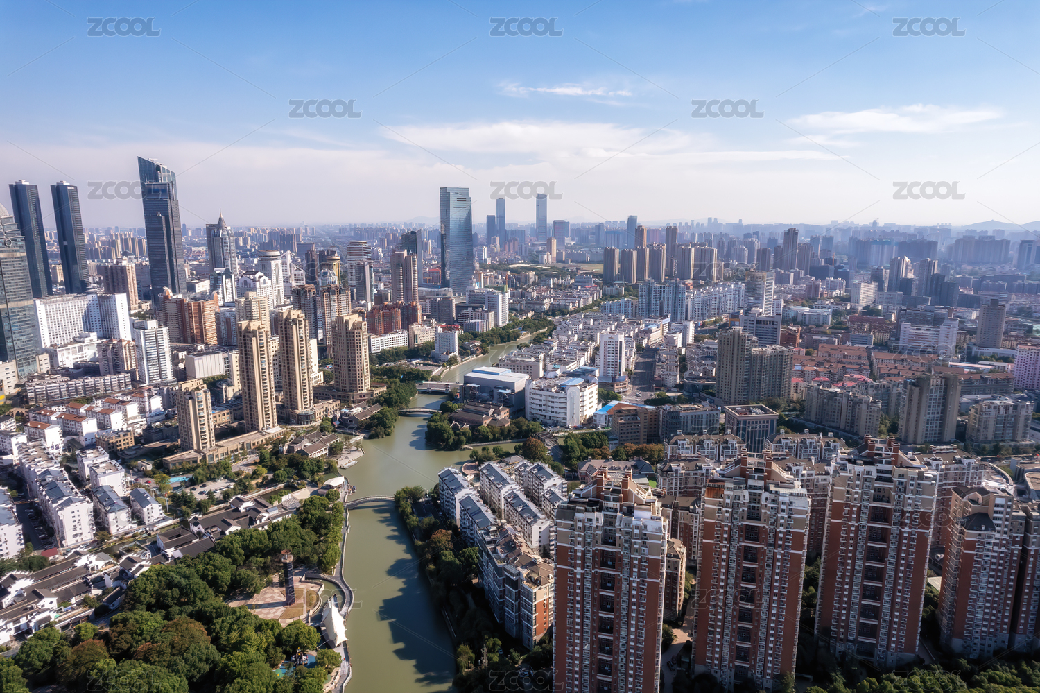 江苏无锡市城市地标建筑市中心蓝天白云风光