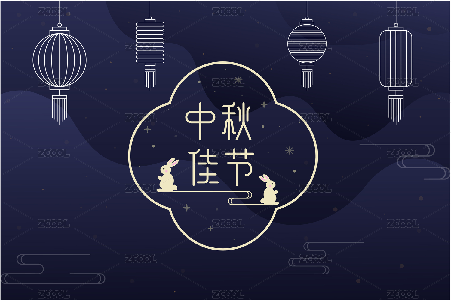 中秋节灯笼玉兔矢量插画
