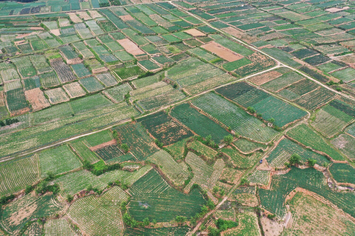 房屋,夏天,白天,下午,航拍,高视角,农作物,地形,田园风光,土地