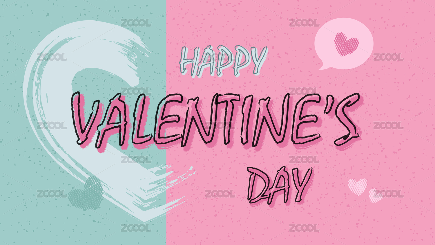 粉红色系手绘风格情人节卡片设计素材