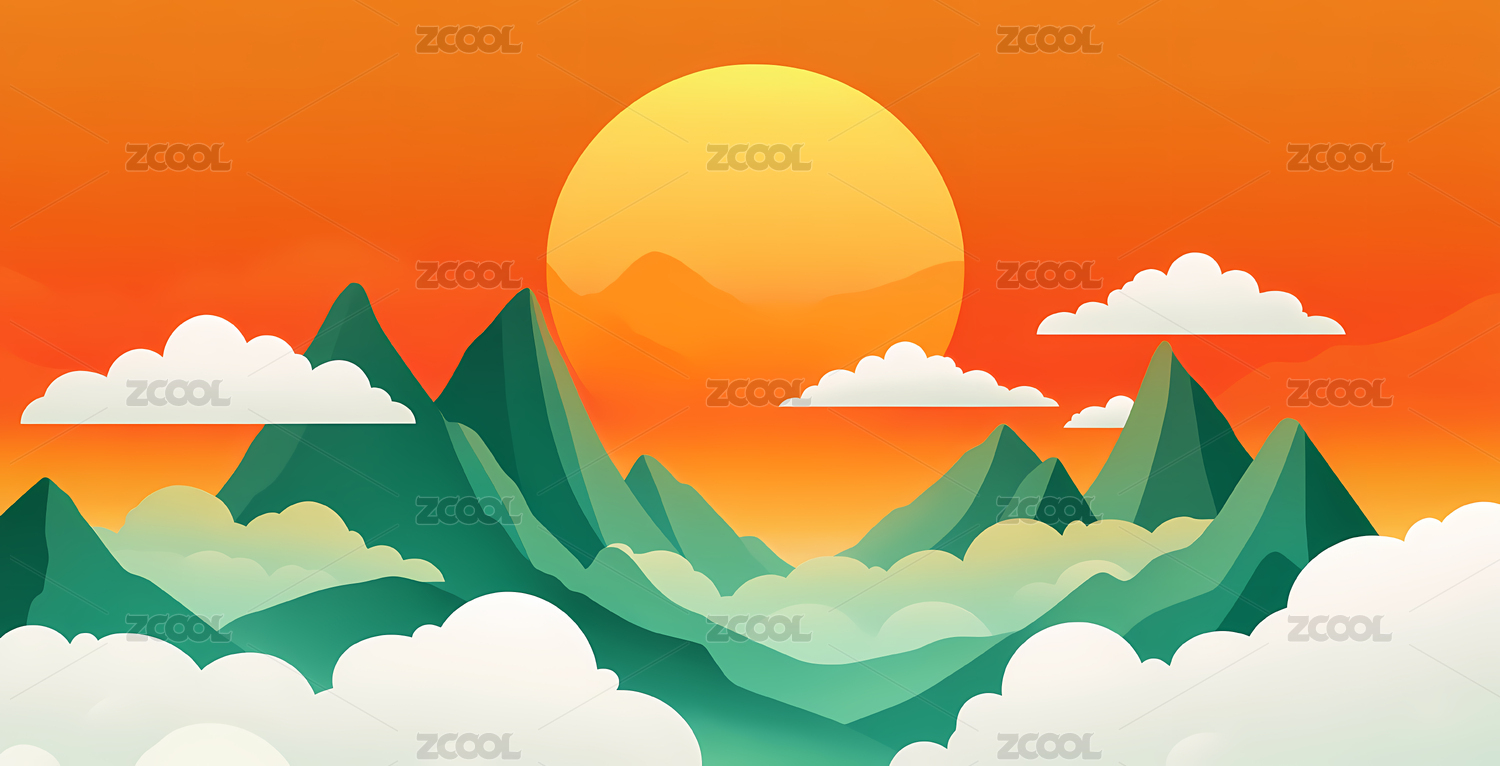 手绘唯美高山自然风景插画