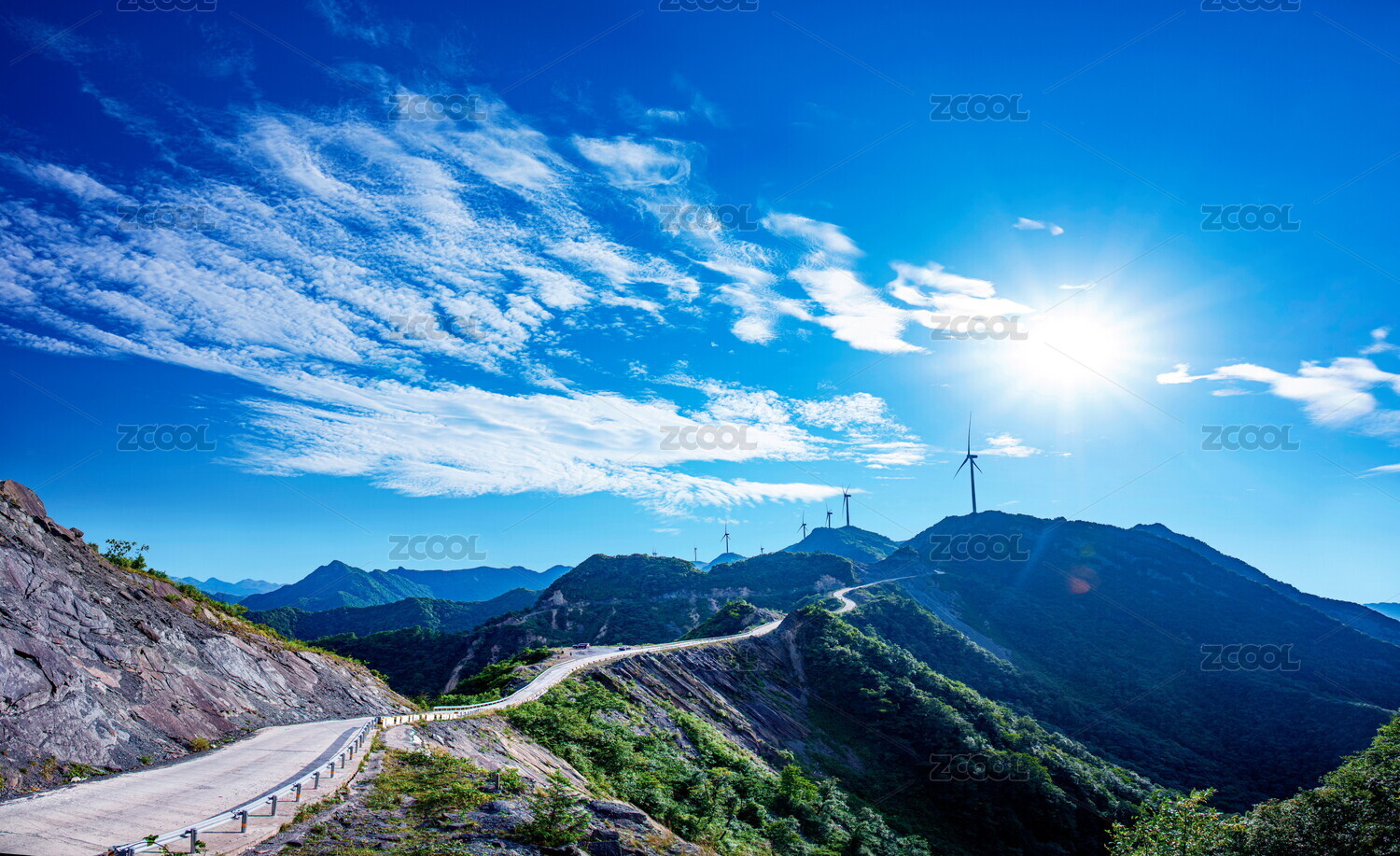 蓝天白云映衬下的重庆綦江区万盛南天门风力发电站的风车