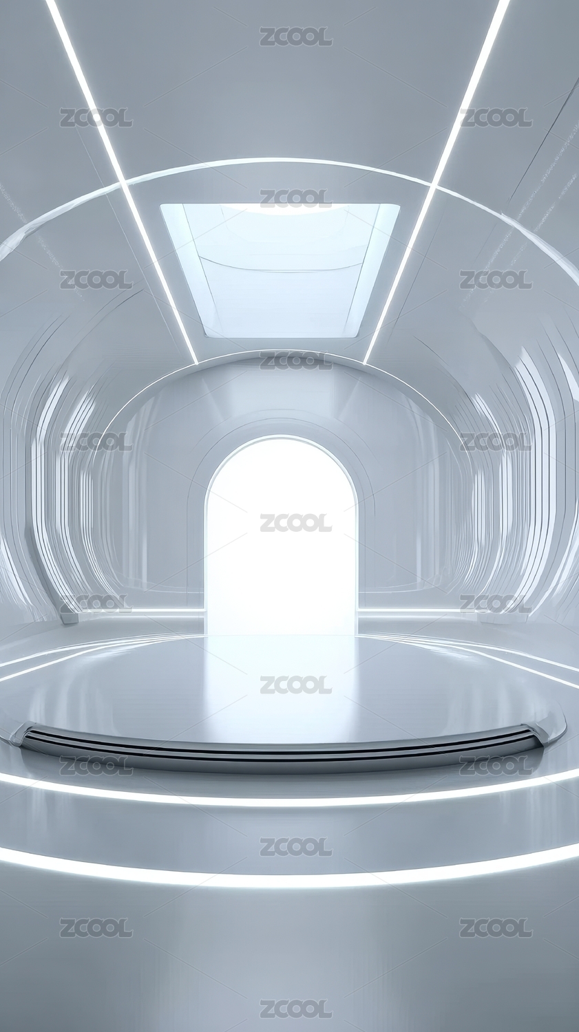 未来感白色隧道空间