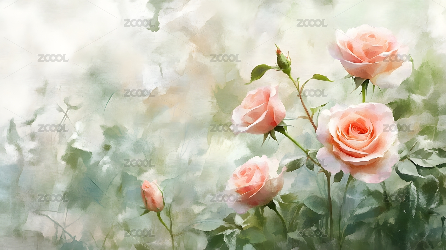 水彩风格粉色玫瑰花卉背景图
