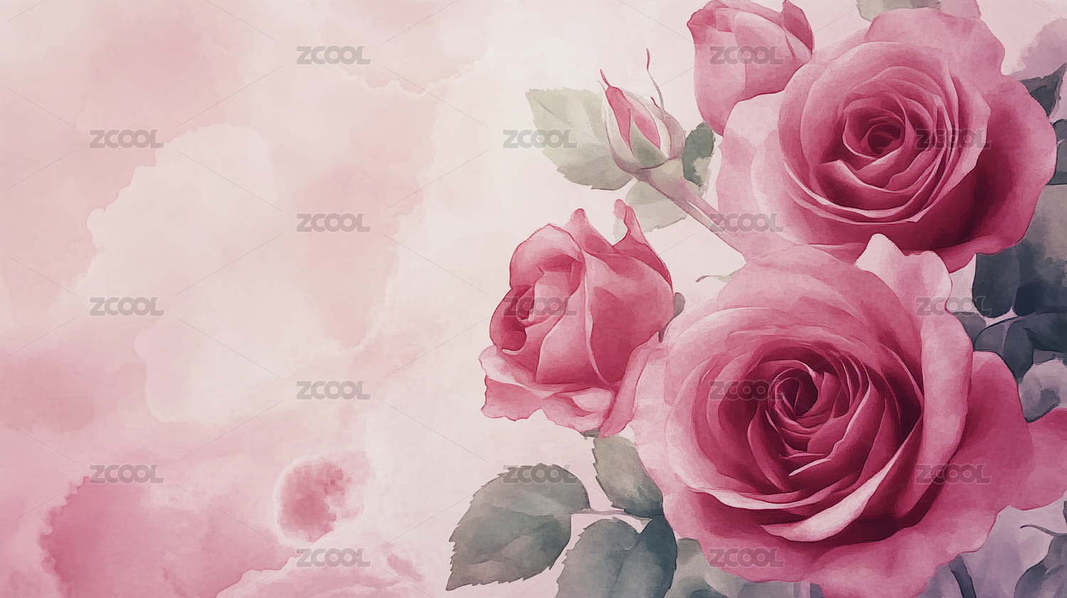 水彩风格粉色玫瑰花背景图