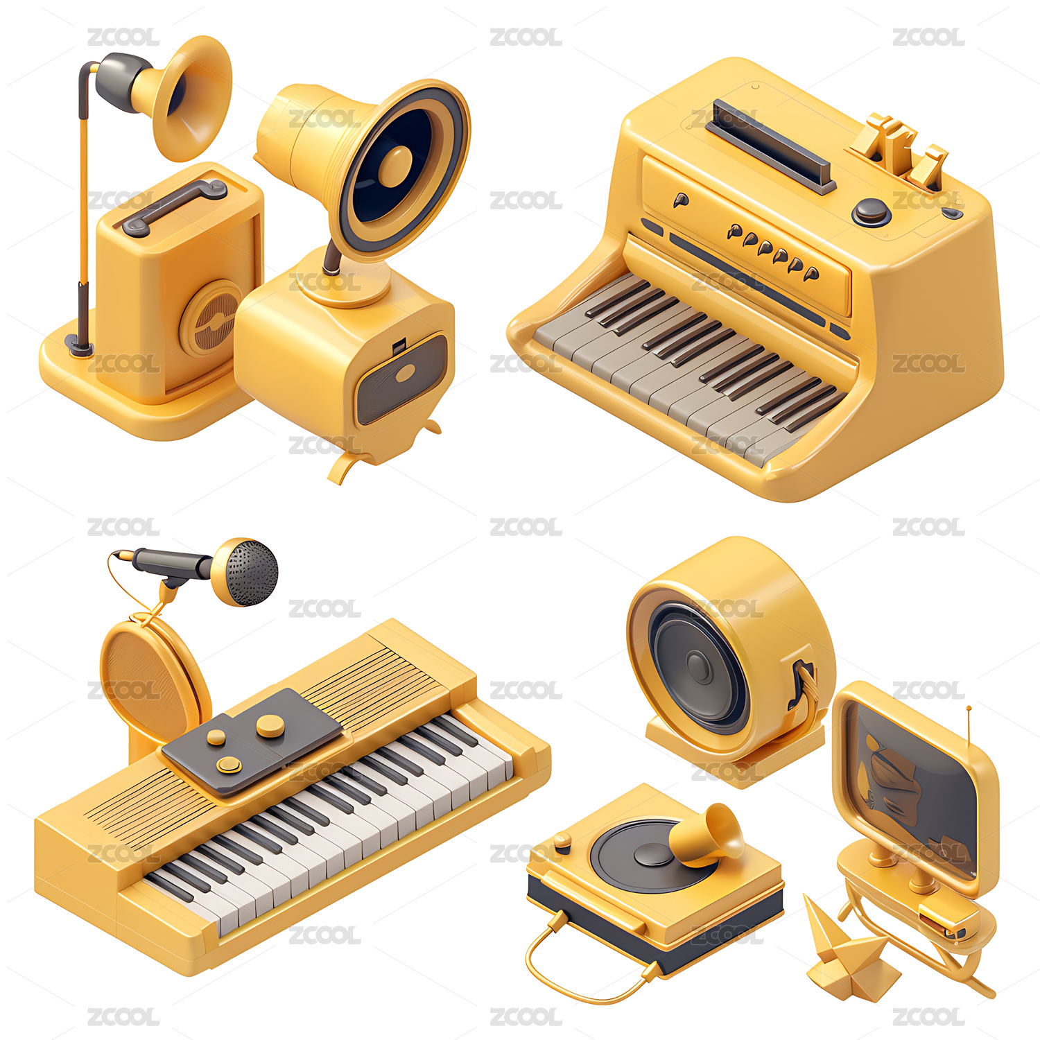 卡通风格演奏的乐器3D渲染