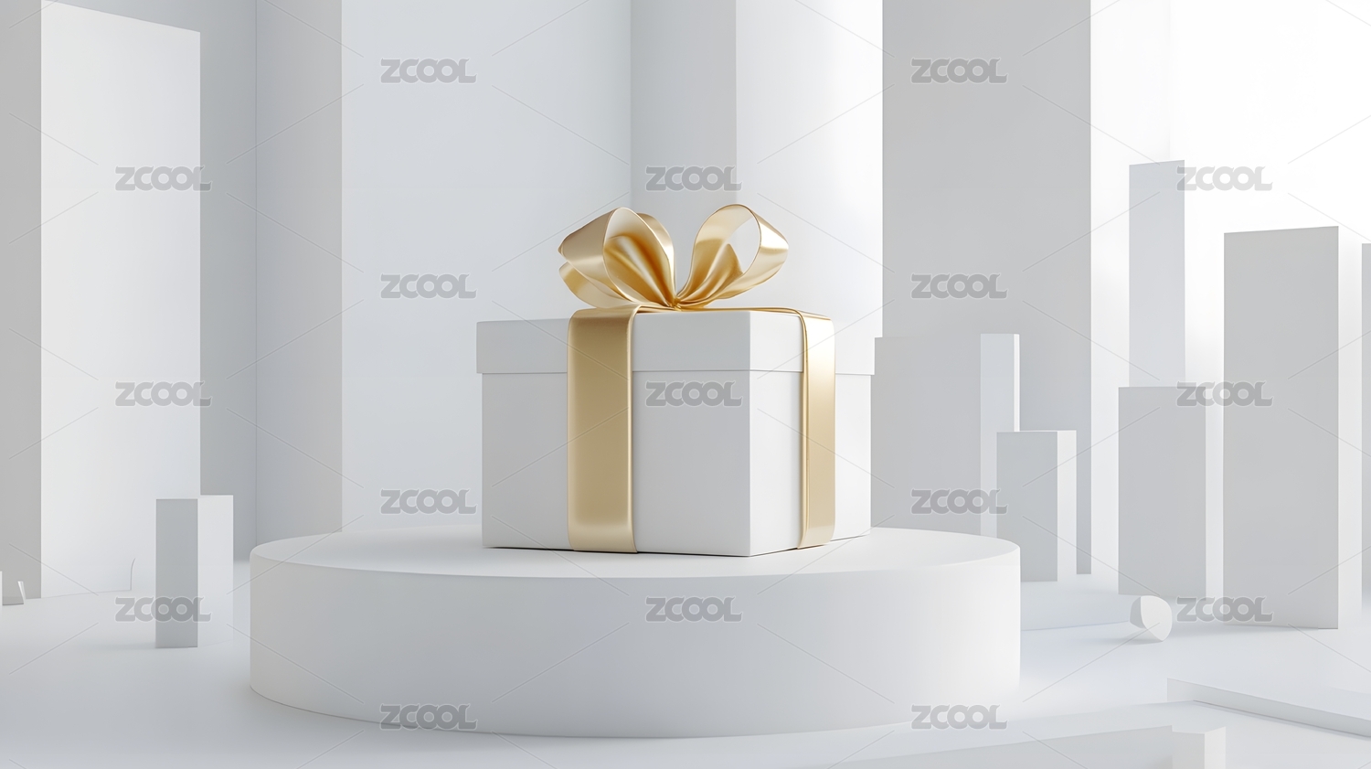 白色礼品盒金色丝带背景