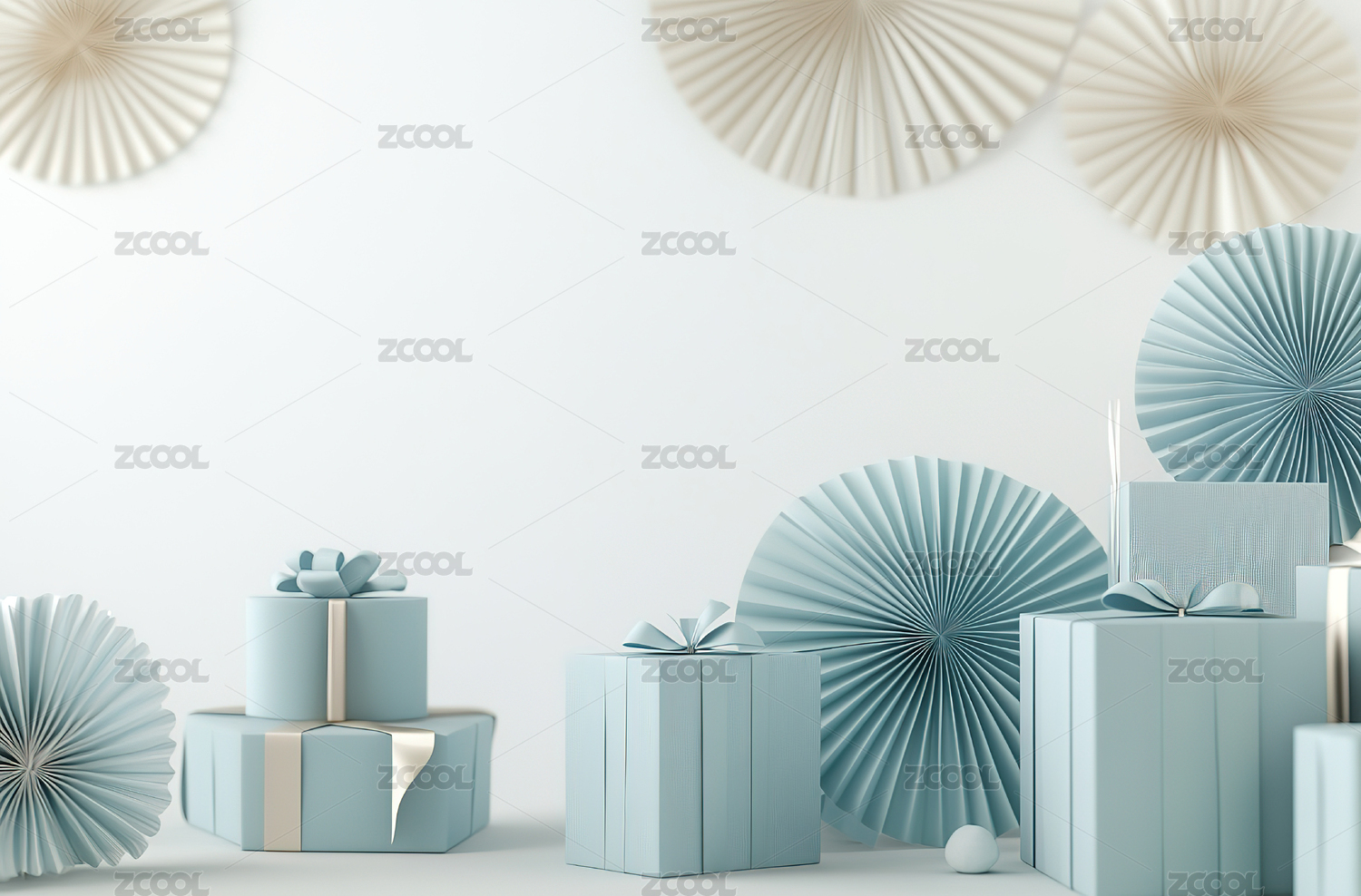 清新淡雅礼盒白色折纸的蓝色展台3D插画