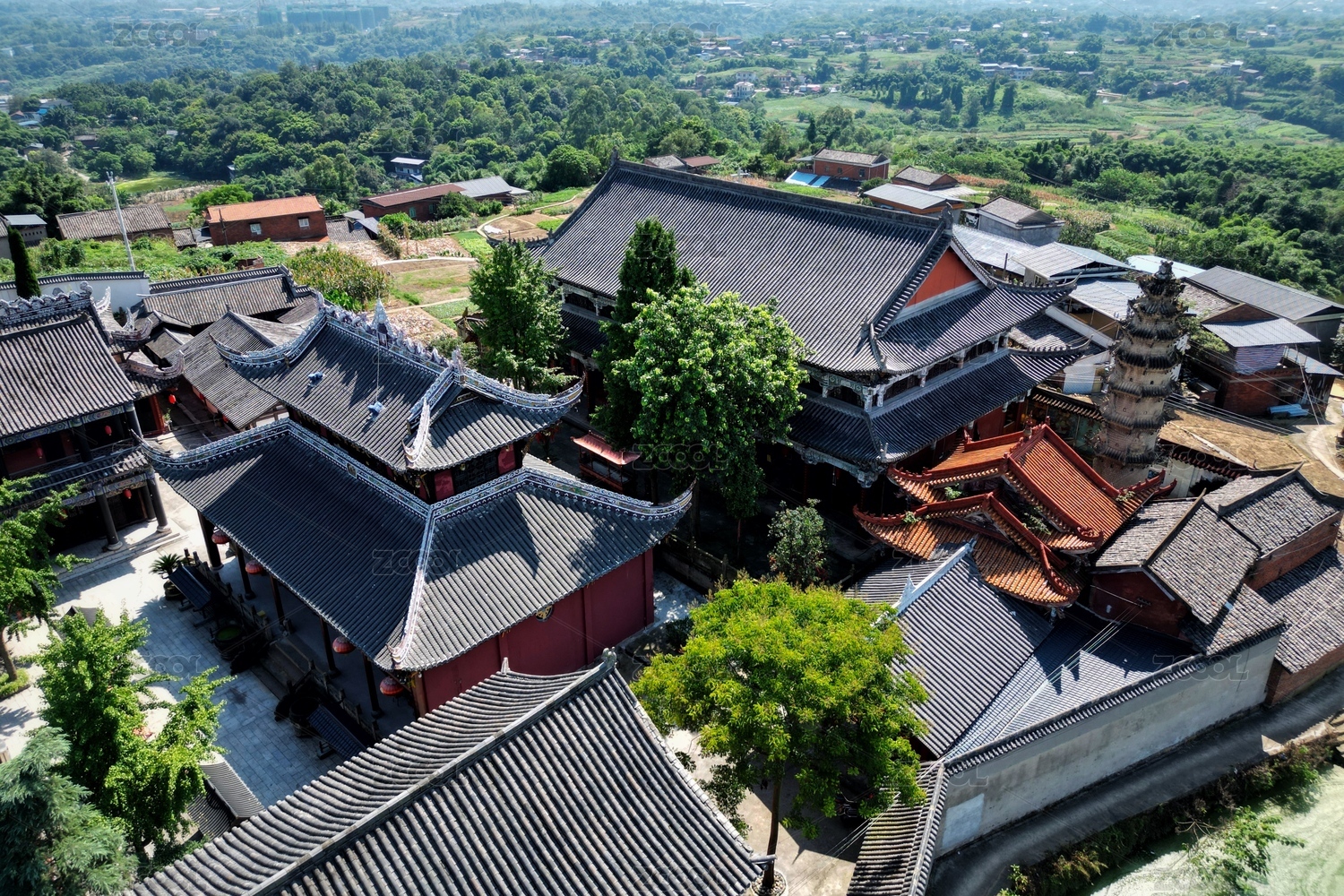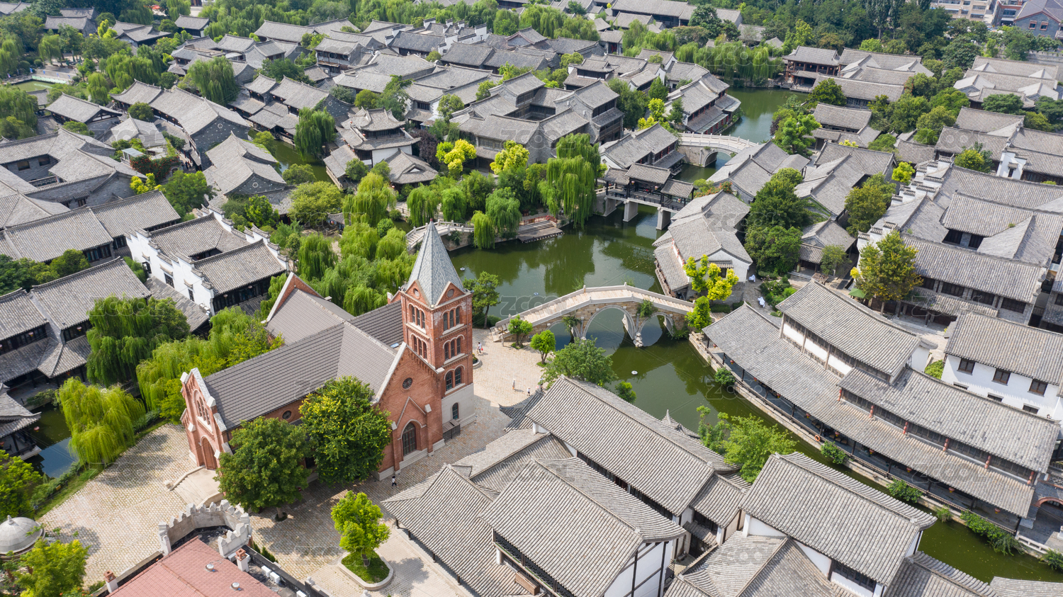 航拍古镇风景