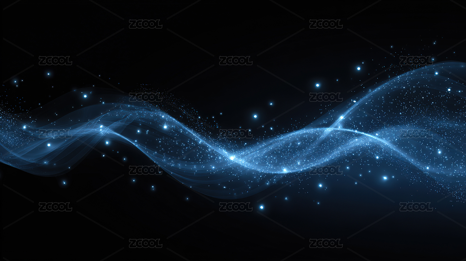 蓝色波浪线与金色光点