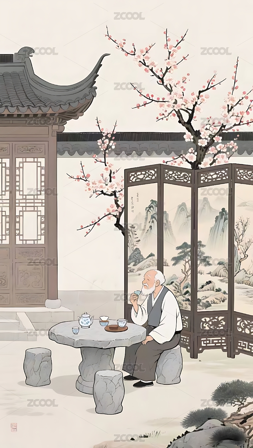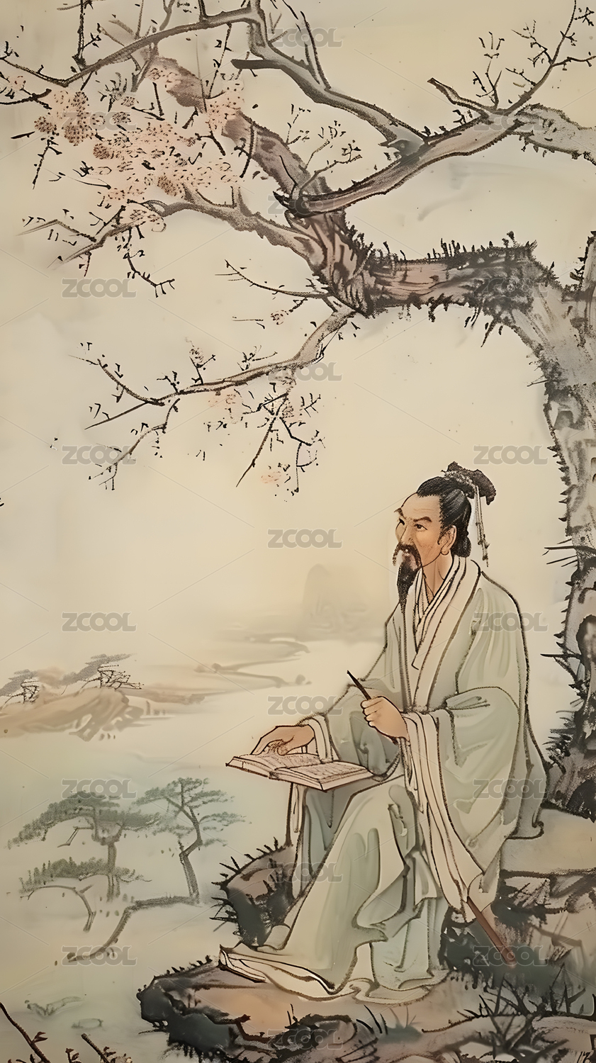 座位,复古,古诗词,宣纸,古代,古风,中国风,国画,写意,阅读