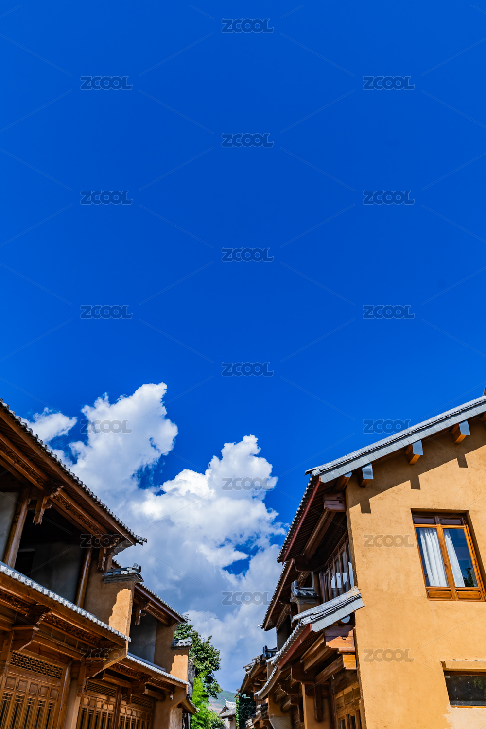 中国云南丽江市玉龙雪山下古城里的建筑景观