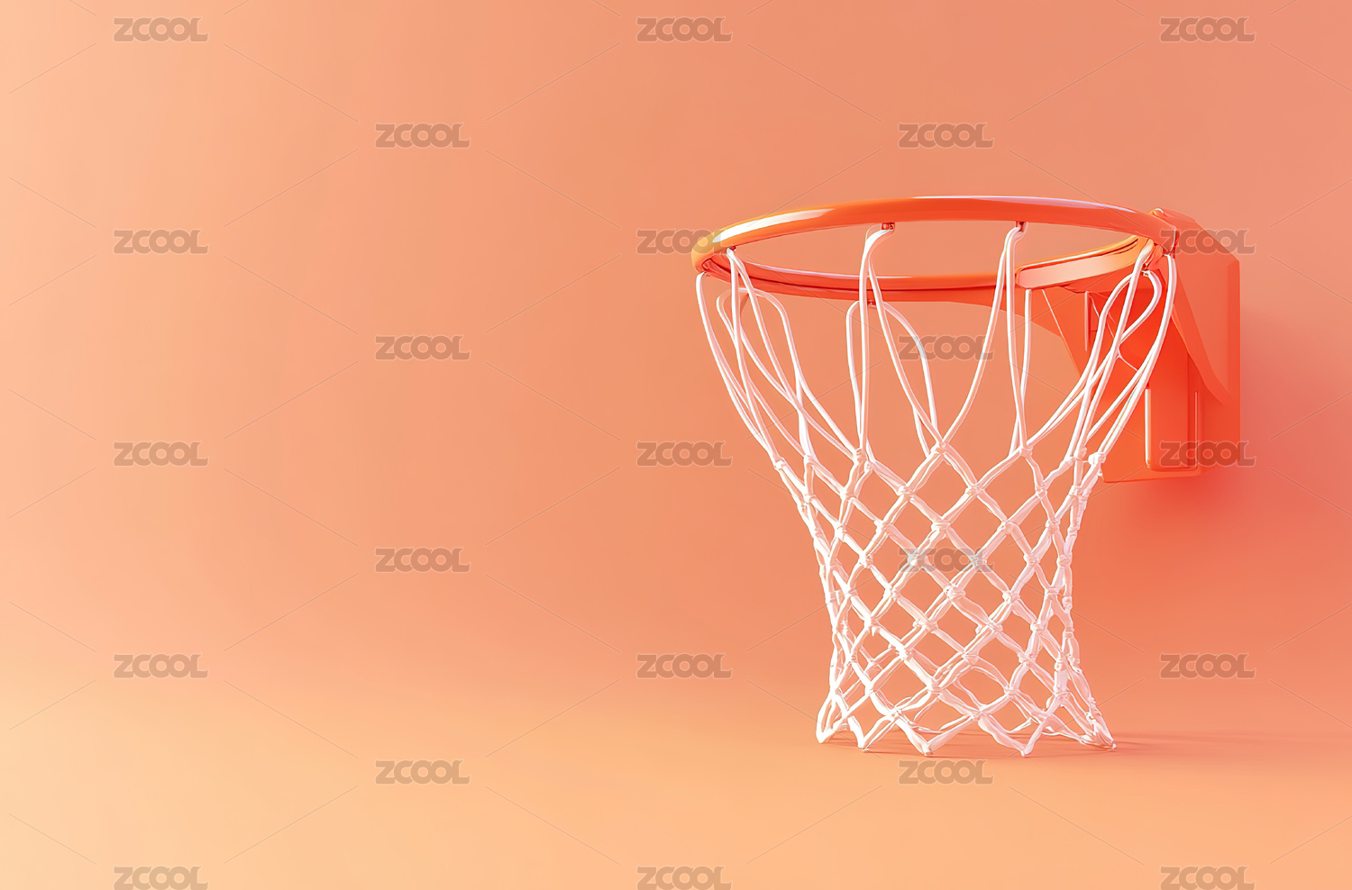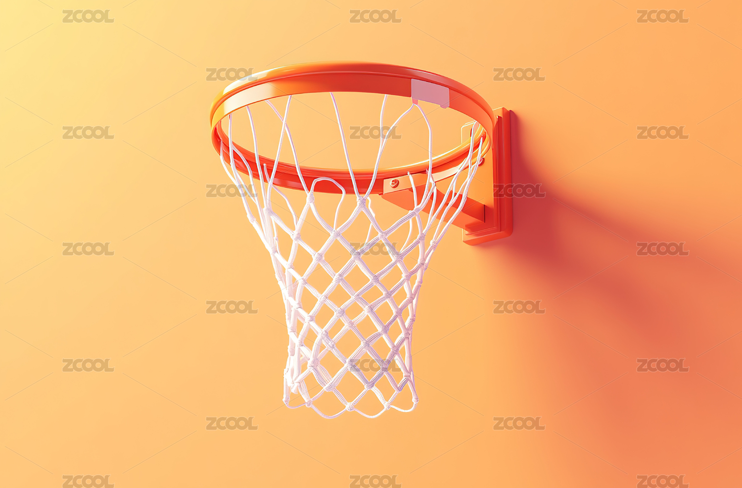 橙色背景下篮球圈的低角度视图