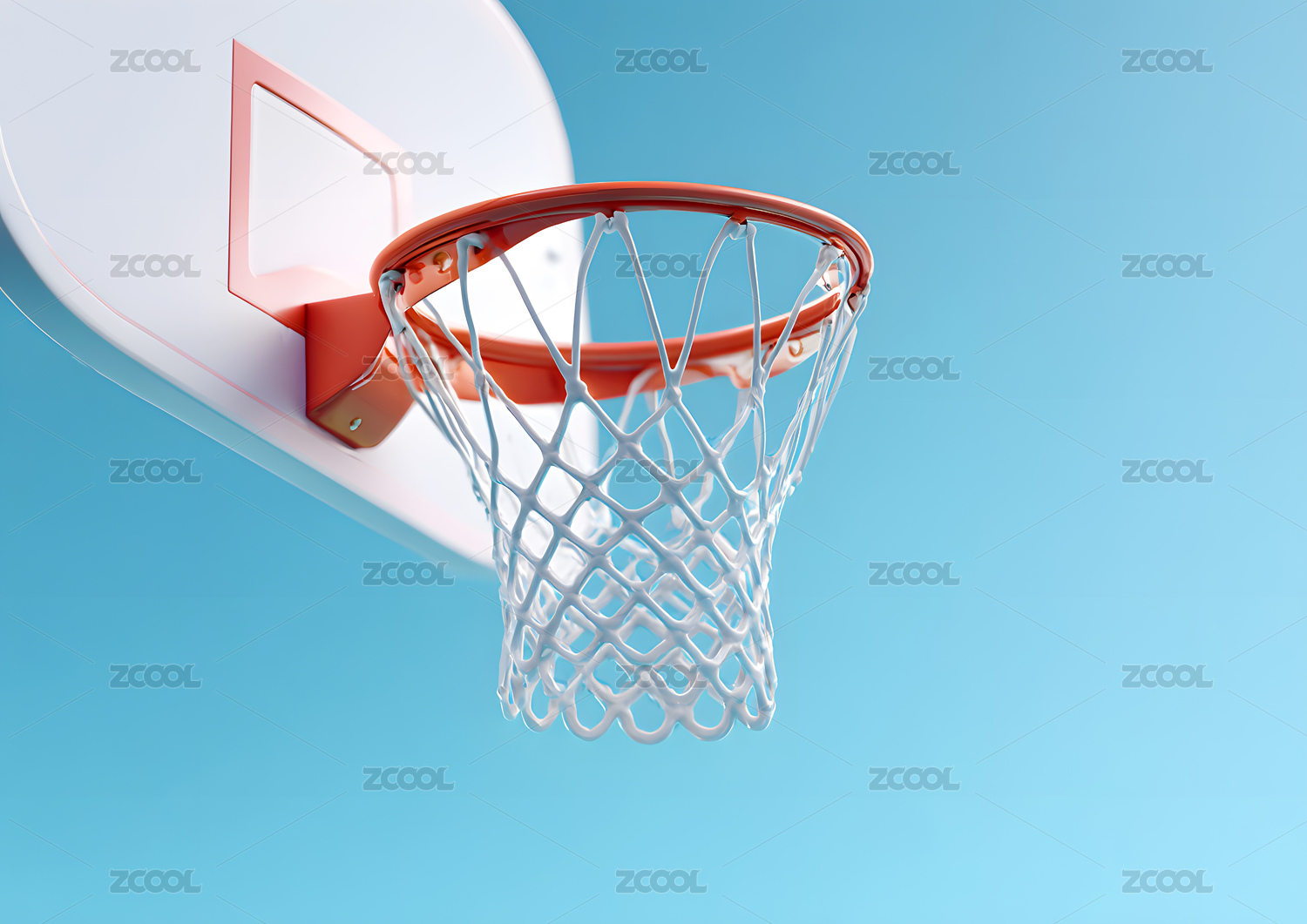 白色背景上篮球圈的低角度视图