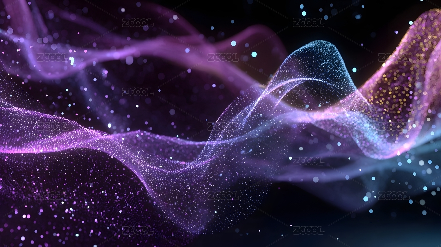 蓝紫色闪耀光效粒子波动背景