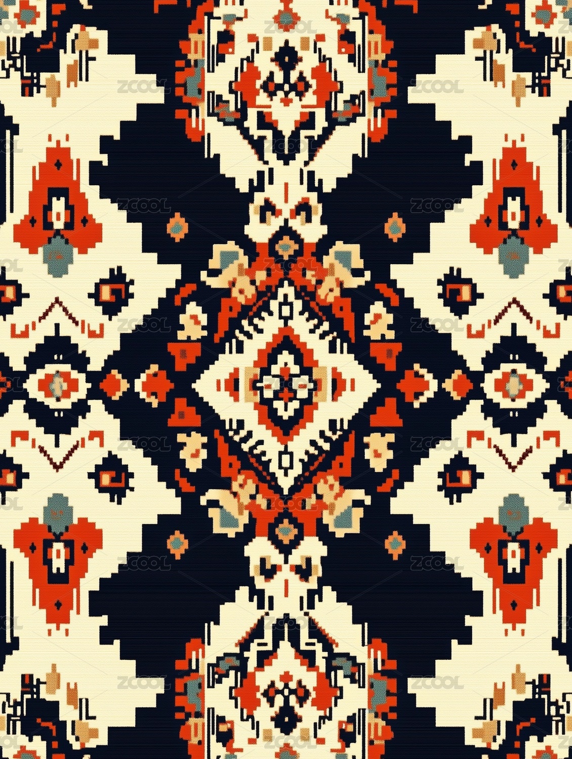 红米色像素风格复古花纹图案