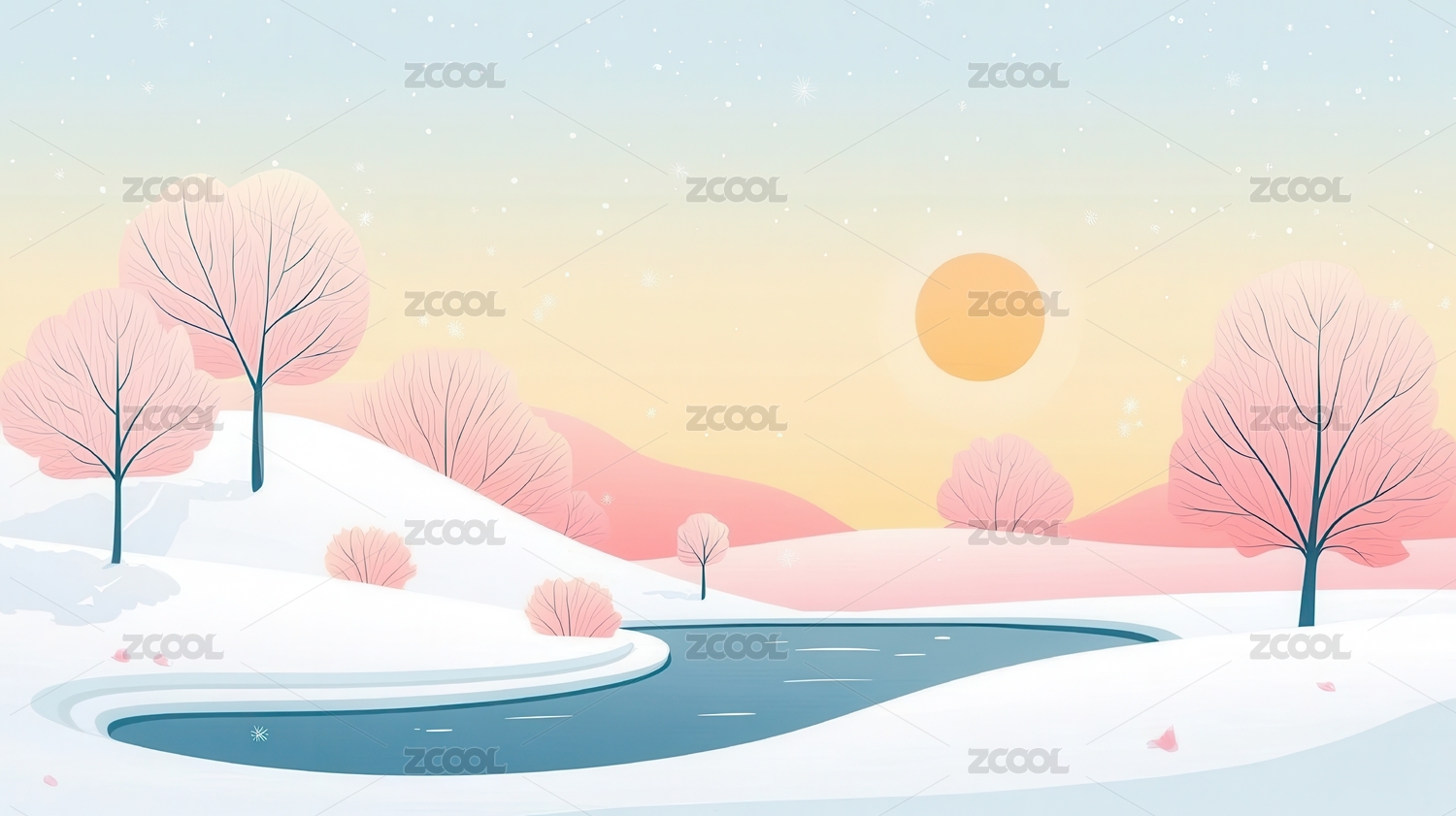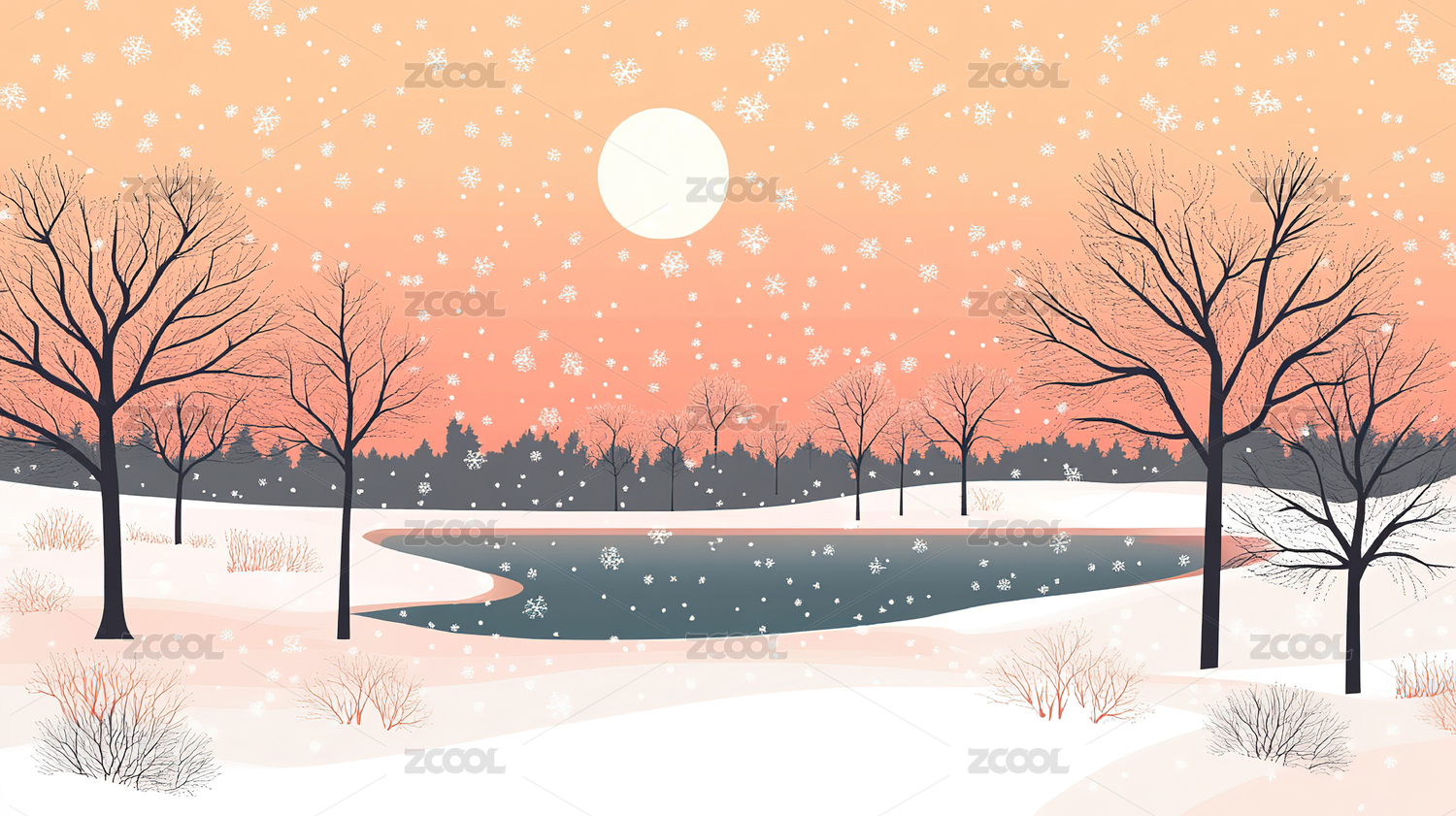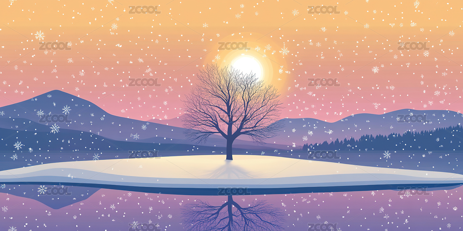 大寒雪地远山麋鹿喝水太阳西下剪纸风风景