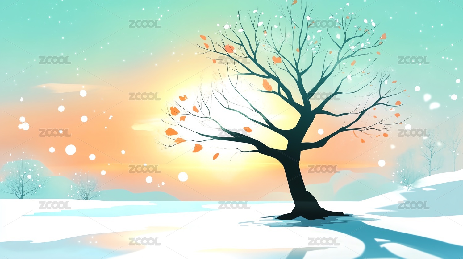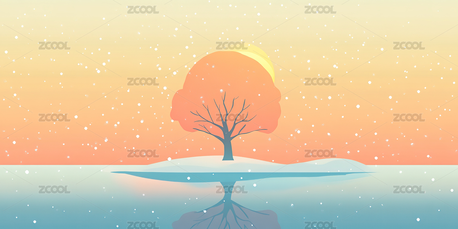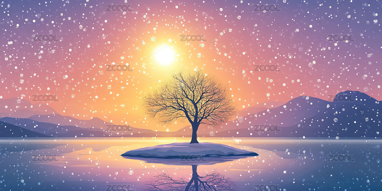 大寒雪地远山麋鹿喝水太阳西下剪纸风风景