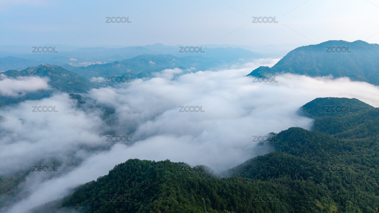 中国湖北宜昌柏家坪村雨后清晨航拍