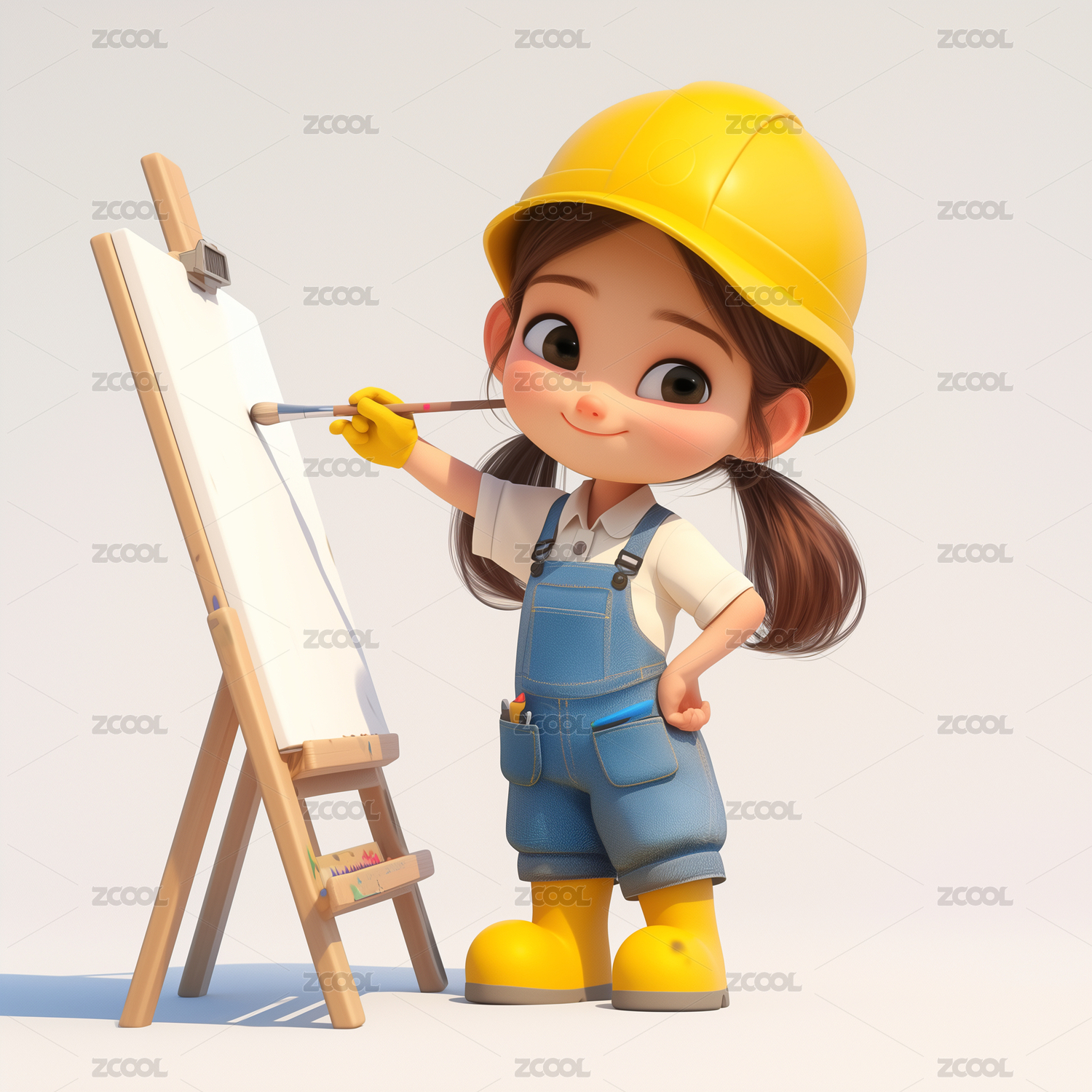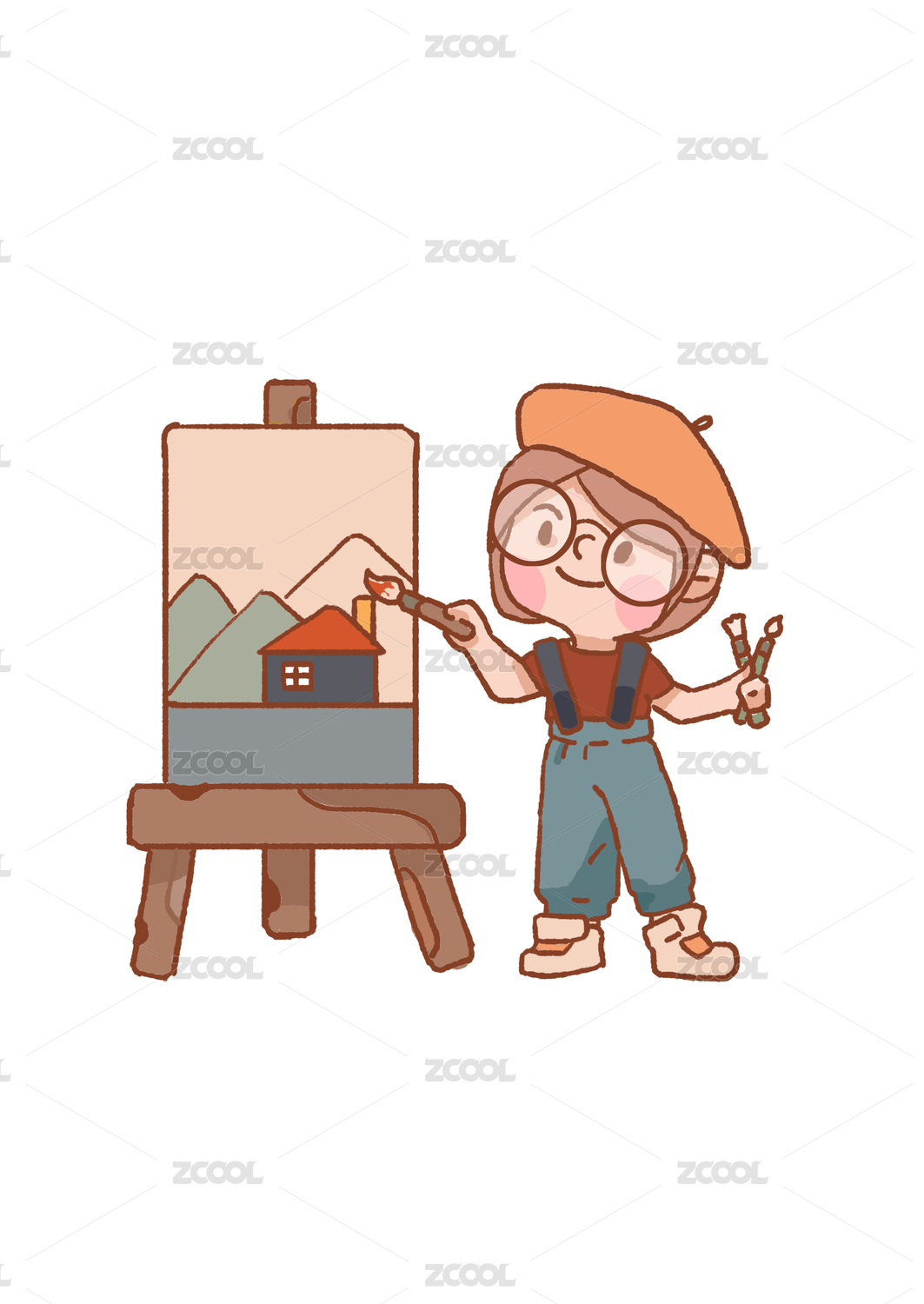 扁平风画画的涂鸦女孩绘画美术课暑假兴趣班