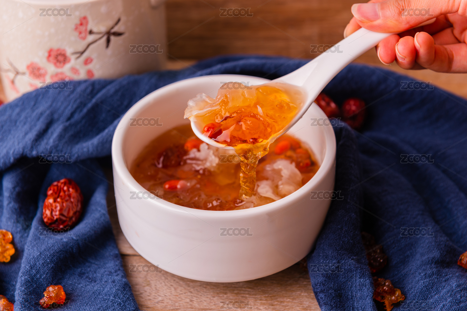 桃胶银耳羹,补品,炖,炖银耳,枸杞,红枣,健康,勺子,食物,熟食
