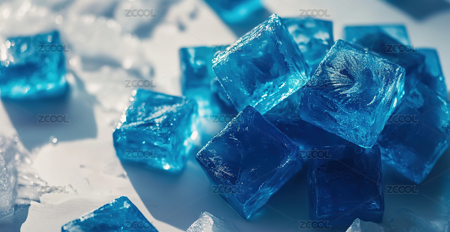 蓝色冰块透明冰晶质感