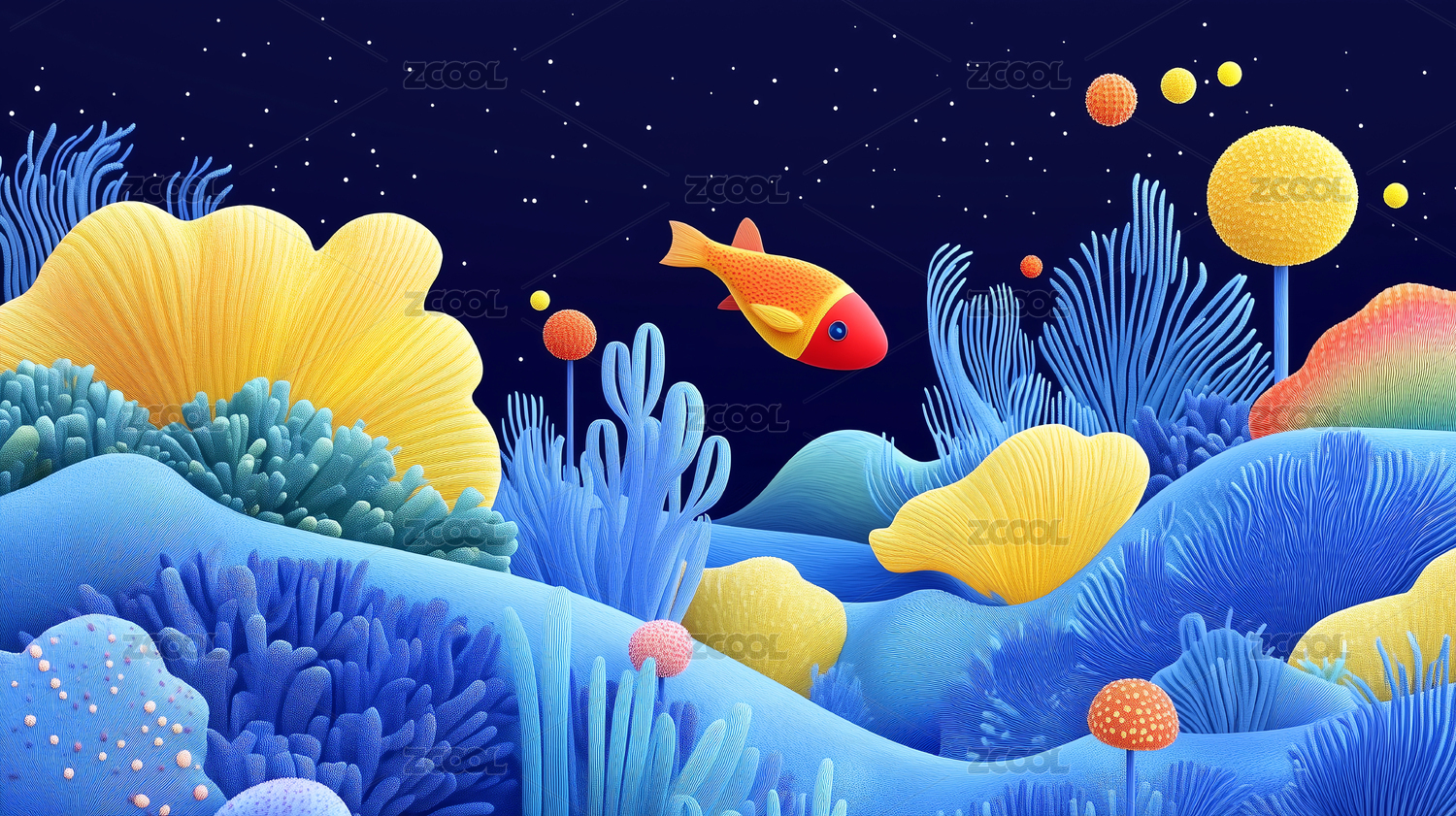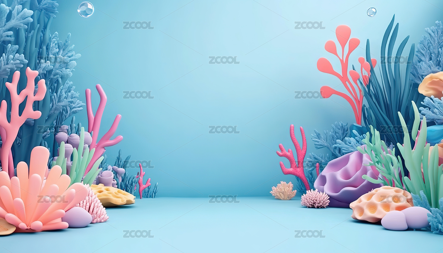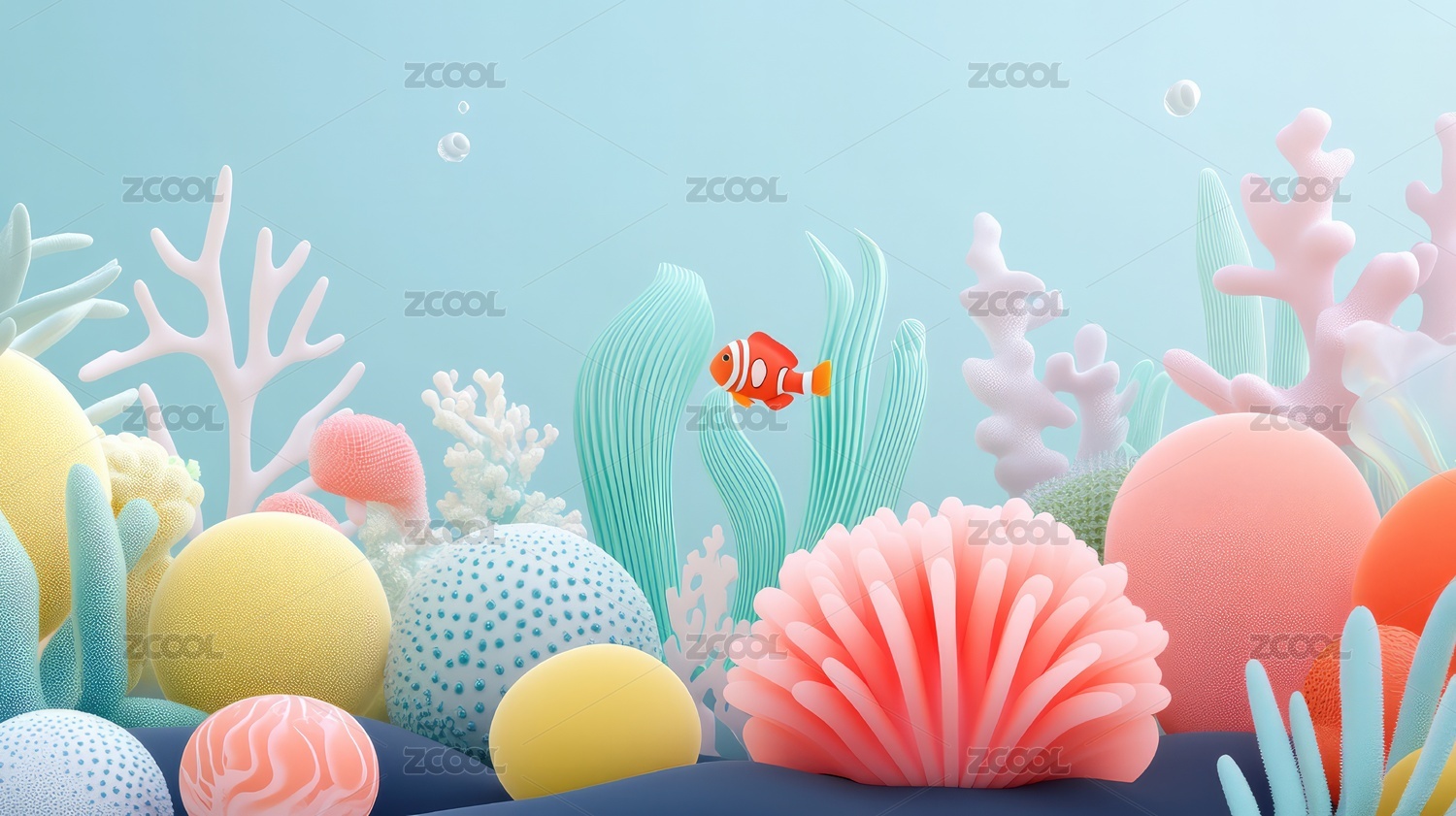 海底世界3D海洋生物珊瑚梦幻唯美自然背景