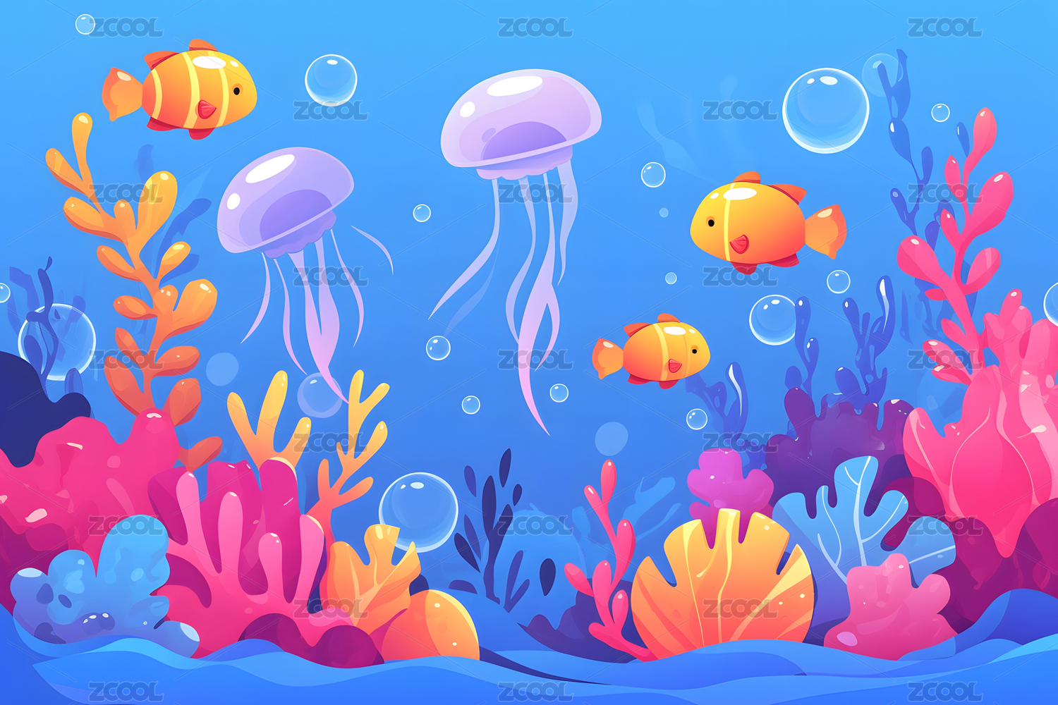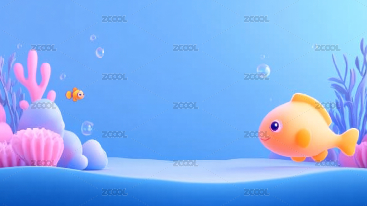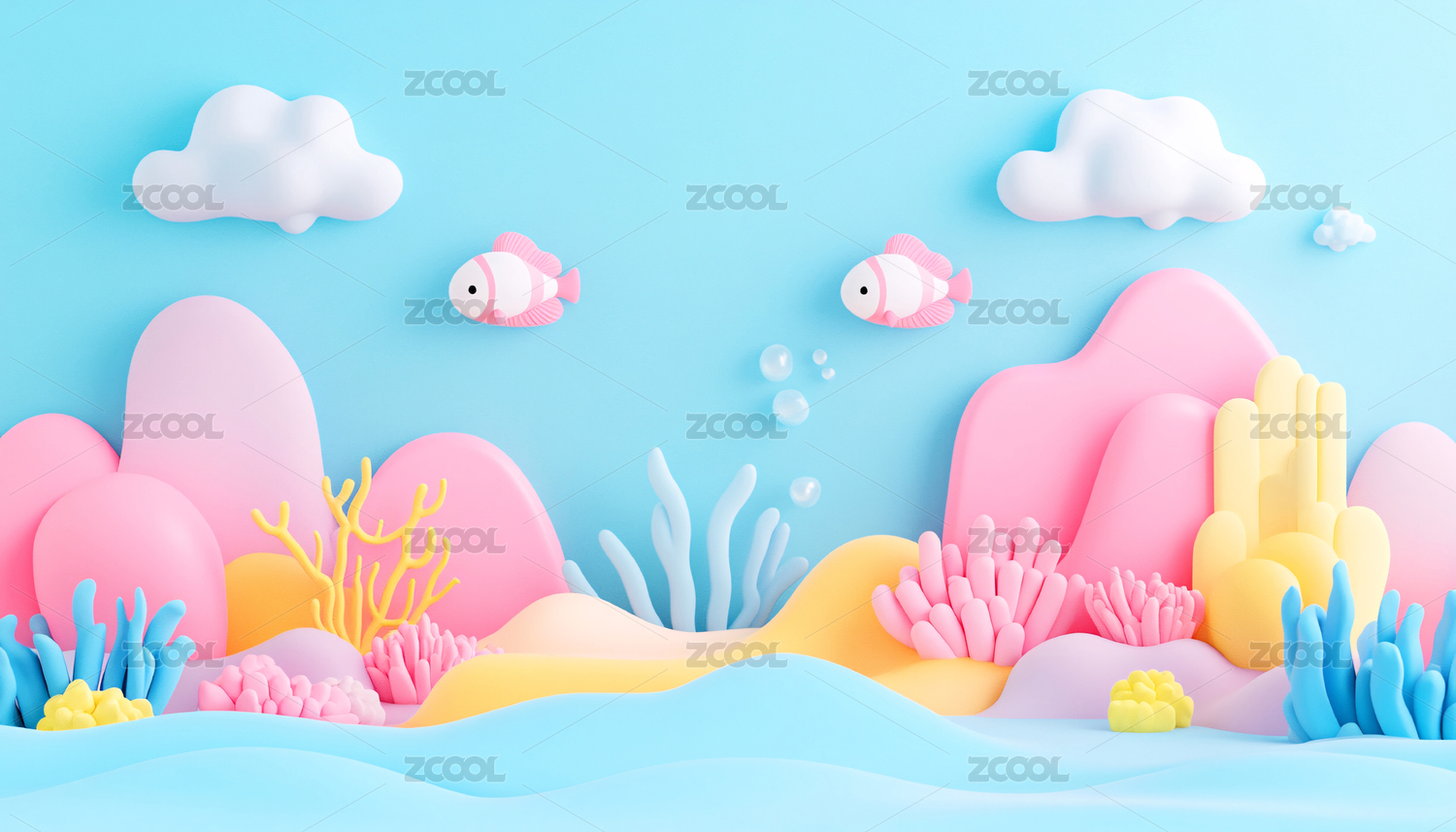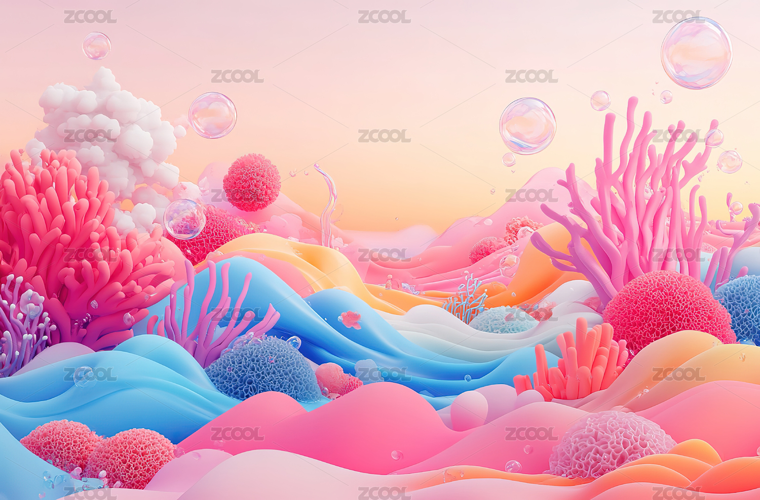 海底世界3D海洋生物珊瑚梦幻唯美自然背景